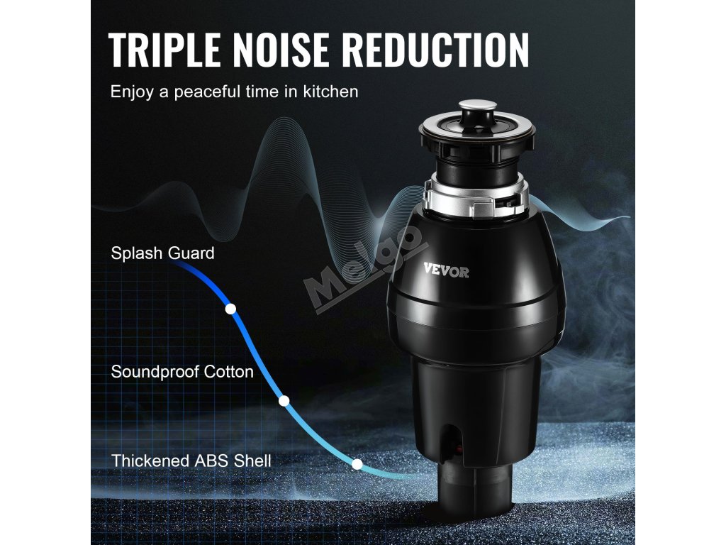 Vďaka viacvrstvovému odhlučneniu vrátane ochranných krytov proti striekajúcej vode, zvukotesnej bavlny a zosilneného plášťa z ABS tento drvič odpadu pracuje s hlučnosťou ≤72 dB, čo vám umožní užívať si pokojnú kuchyňu bez rušivého hluku.