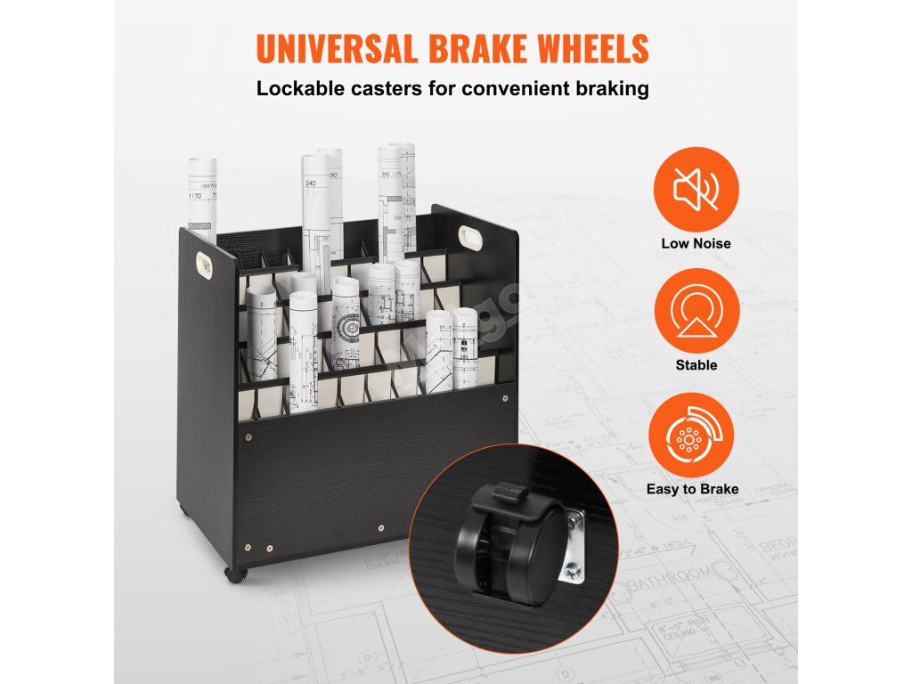 Mobilní dřevěný regál na výkresy a plakáty, 50 přihrádek do domu