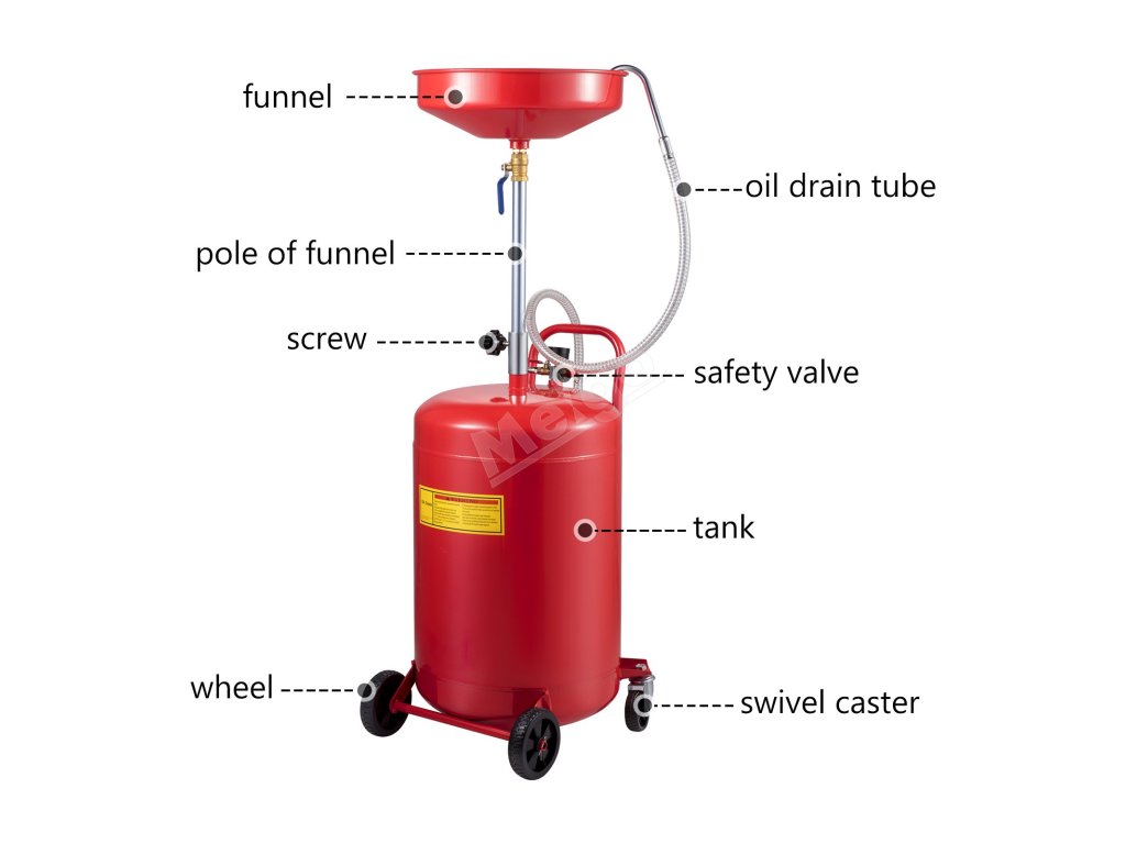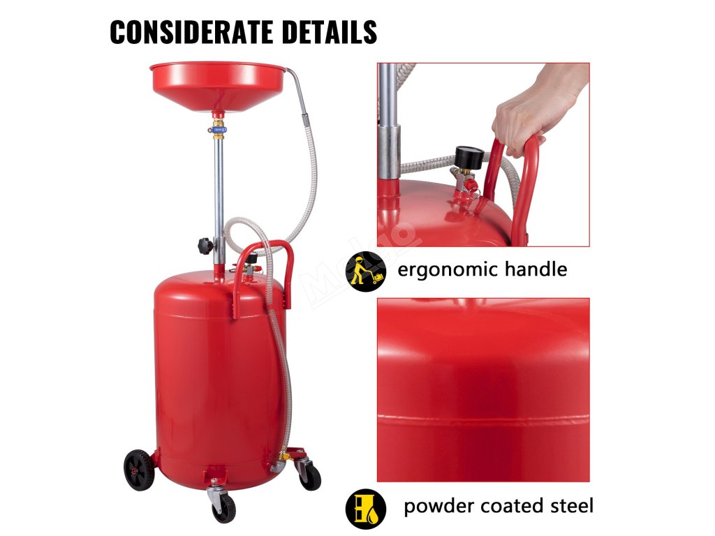 Kapacita této vypouštěcí nádrže na olej může dosáhnout až 20 galonů/80 litrů, což vám umožní shromáždit odpadní olej z 8 až 10 automobilů. Ideální pro sběr a vypouštění použitého oleje a provozních kapalin.
