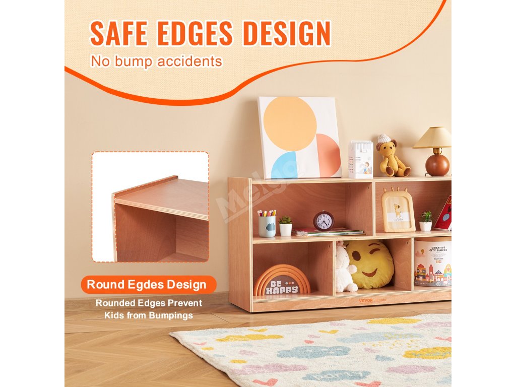 Naše dětská úložná skříň prošla přísnými bezpečnostními certifikacemi pro dětský nábytek, má zaoblené hrany a hladký povrch, takže poskytuje bezpečný úložný prostor pro děti a klid pro rodiče.