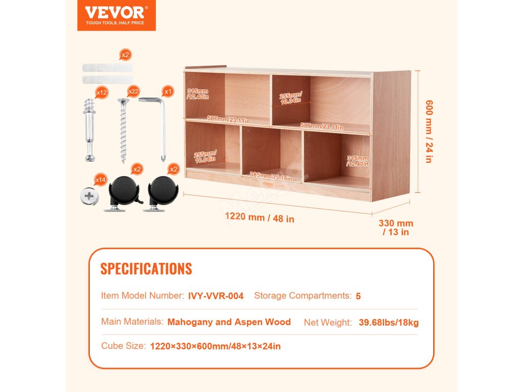 VEVOR 5 přihrádek Cubby Mobile Tray Storage Cabinet