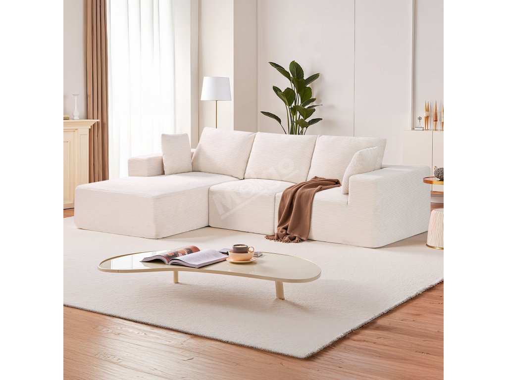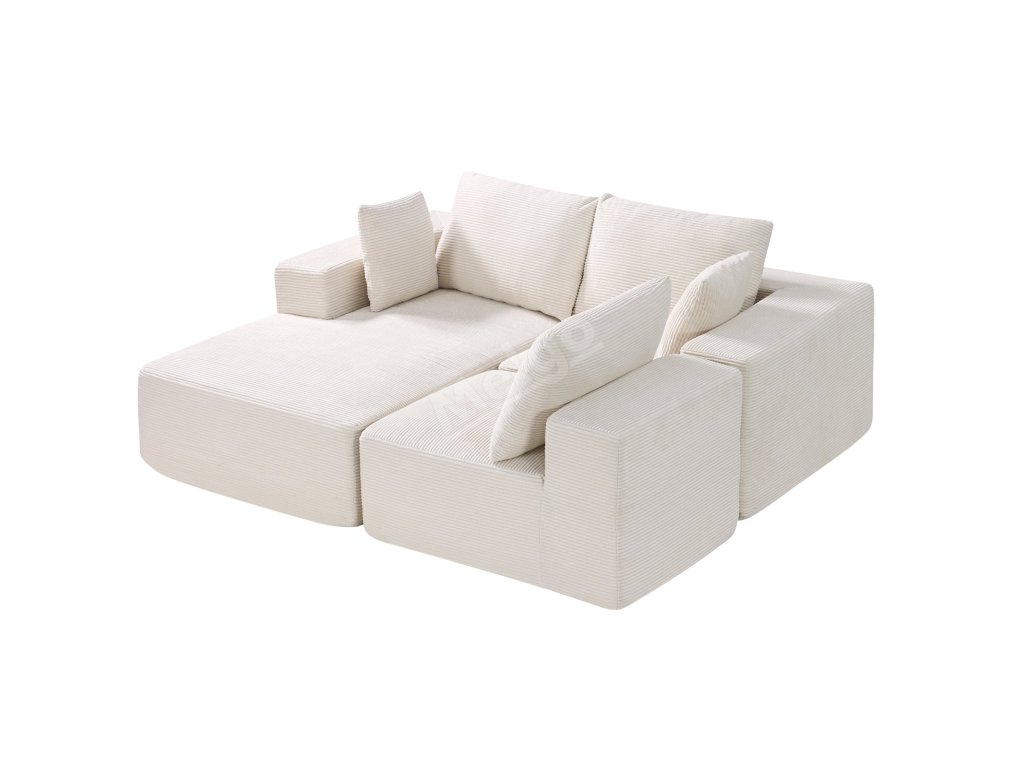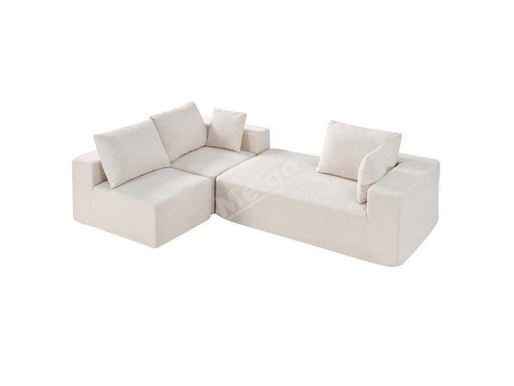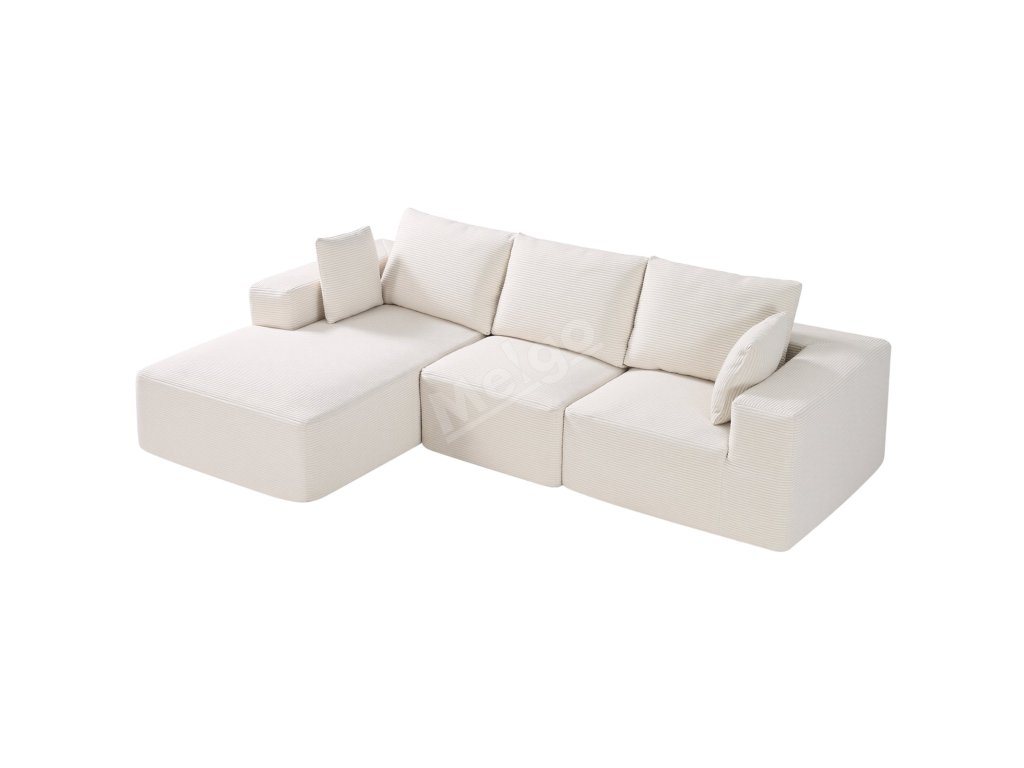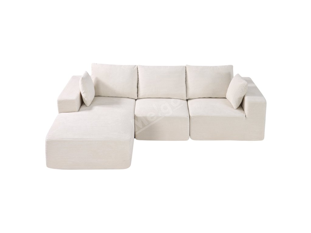 Modulová rohová sedačka l tvar s lenoškou, manšestr, pěna, béžová