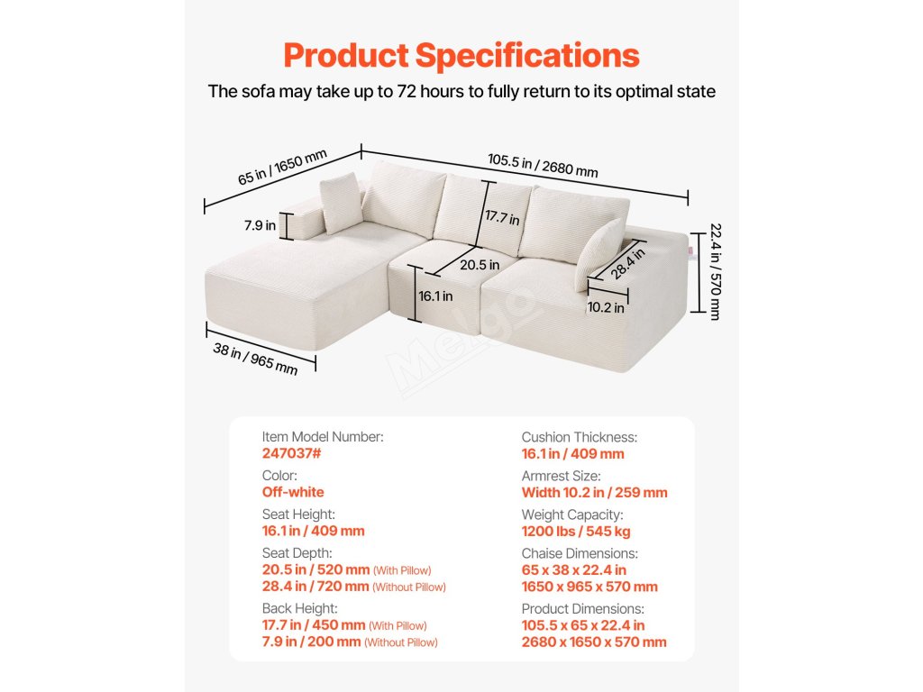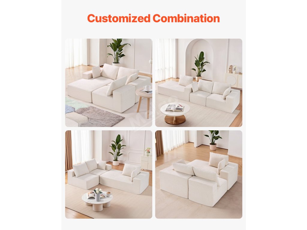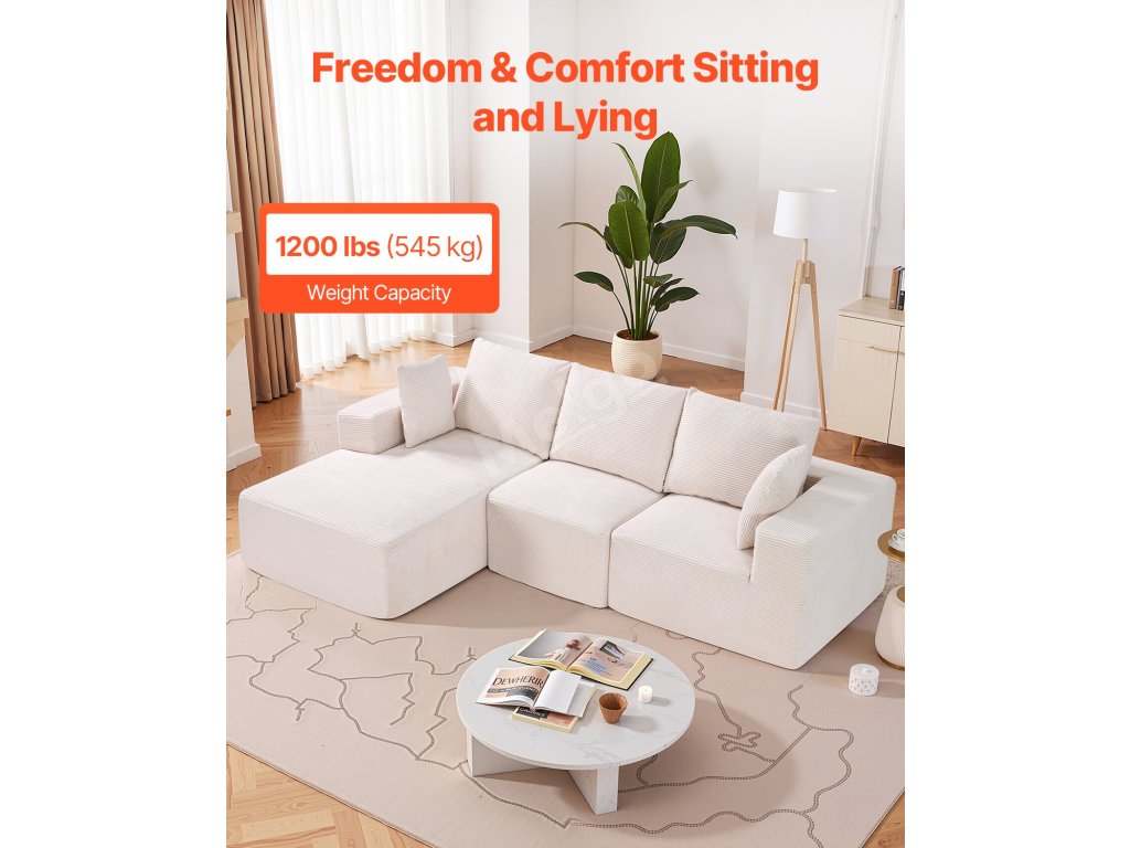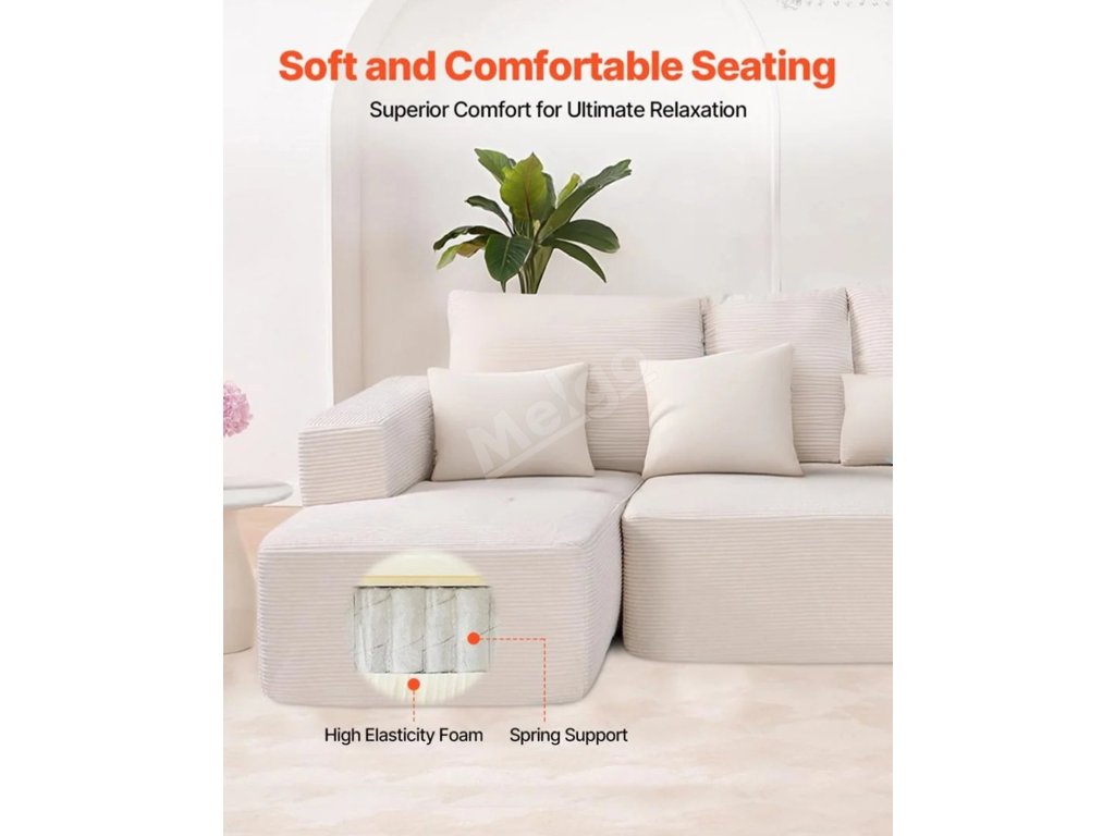 Tato všestranná modulární sekční pohovka je navržena tak, aby se hodila do vašeho domova a stylu, a nabízí pohodlí a moderní vzhled. Je vyrobena z vysoce elastické pěny a pružinové podpory, takže je odolná a pohodlná. Prodyšná, snadno udržovatelná manšestrová tkanina udrží váš obývací prostor stylový a nenáročný na údržbu.
