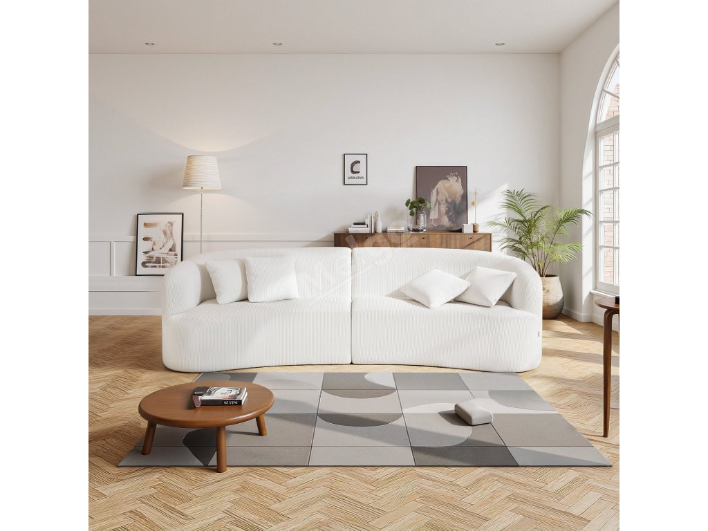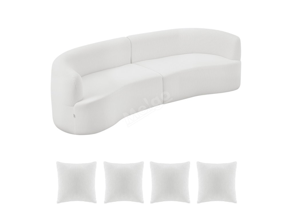 Modulová zakřivená pohovka 2840 mm, 4 polštáře, kordurová bílá