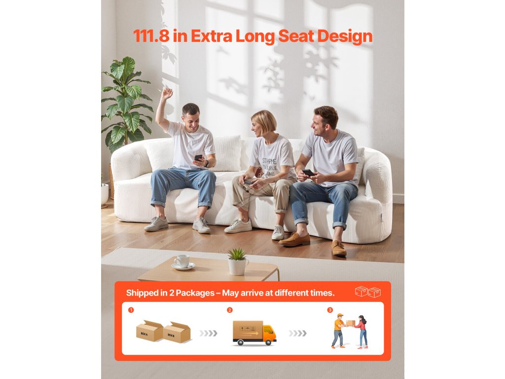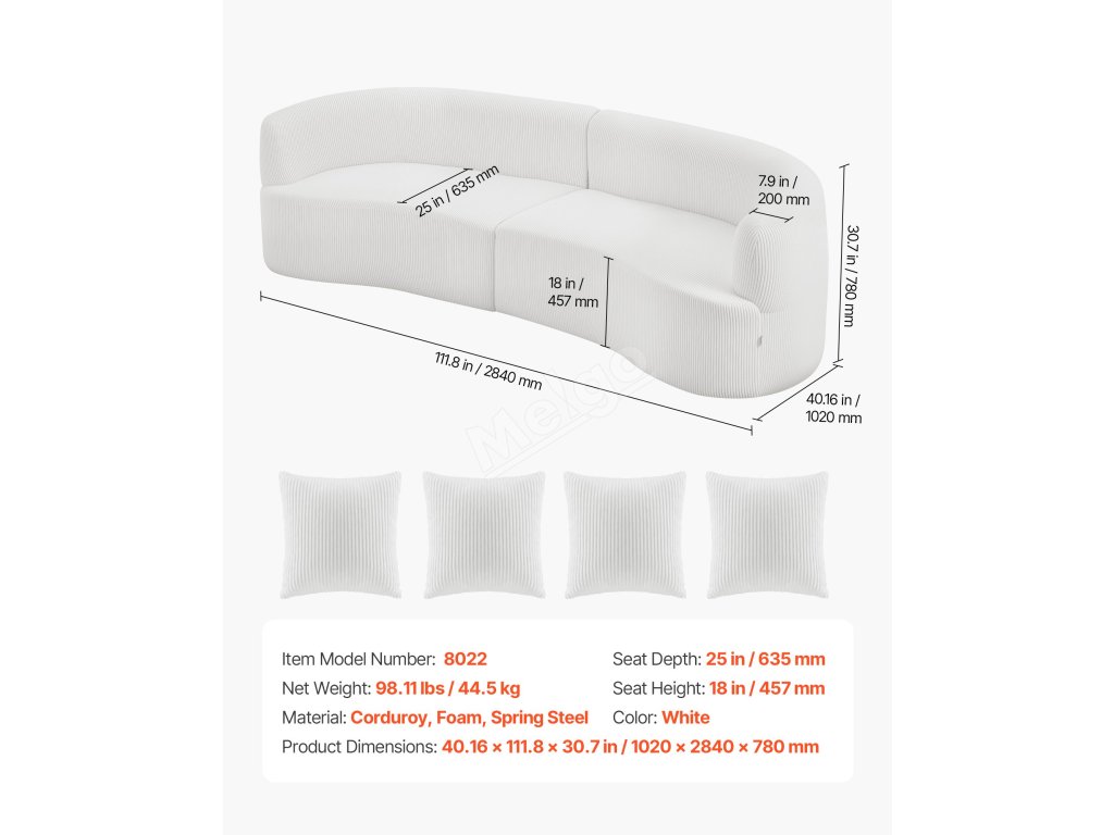Tato rozkládací pohovka o rozměrech 111,8 palce / 2840 mm je vybavena pěnou 28D s vysokou hustotou a systémem vinutých pružin pro výjimečné pohodlí a oporu. Prodyšná manšestrová tkanina šetrná k pokožce a široké područky zajišťují měkkost a příjemný pocit. Není nutná žádná montáž, stačí rozbalit a nechat 48-72 hodin usadit.