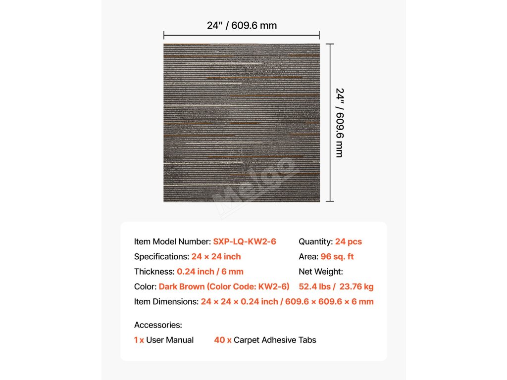 Modulové kobercové dlaždice 610×610 mm, 24 ks, 8.9㎡, tmavě hnědé