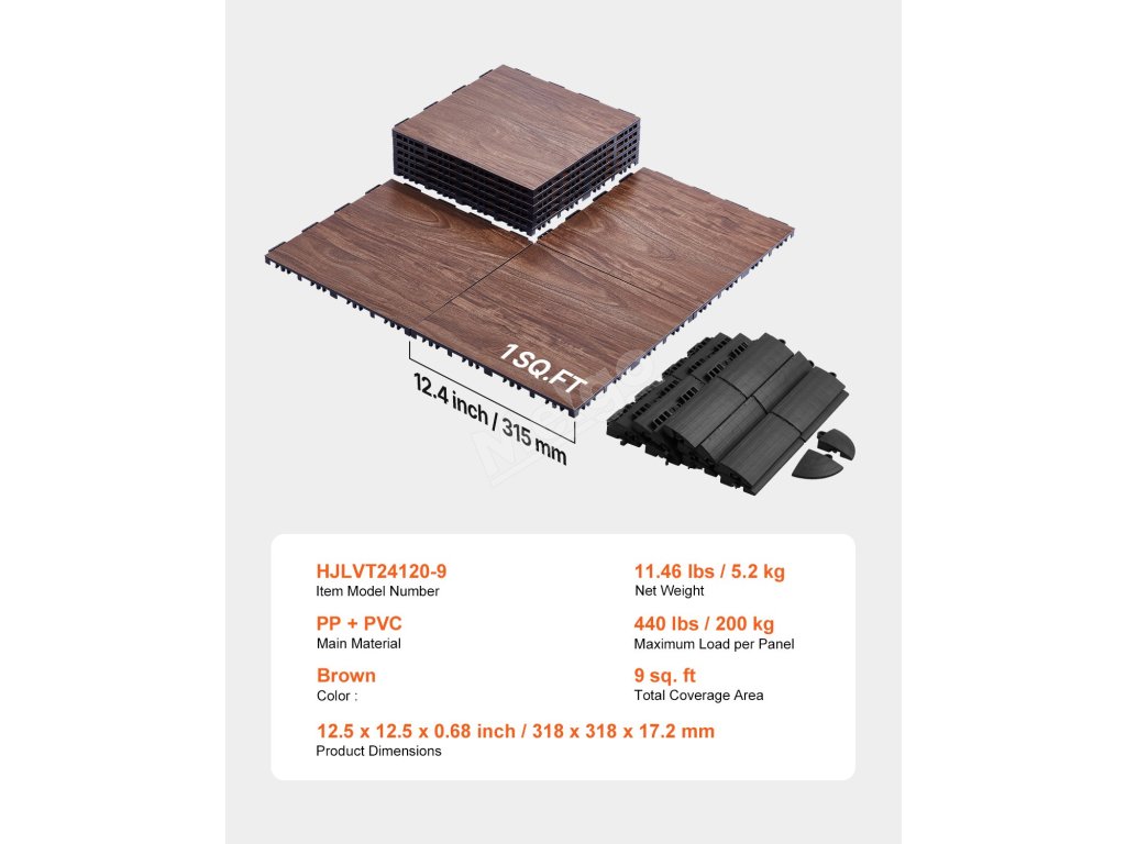 Moduly taneční podlahy 12.4×12.4 in, 9 dílů, tlumený podklad