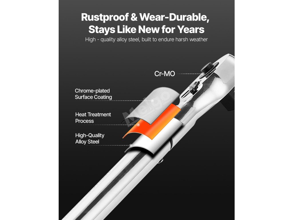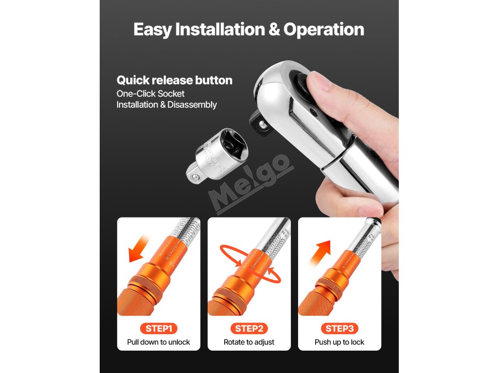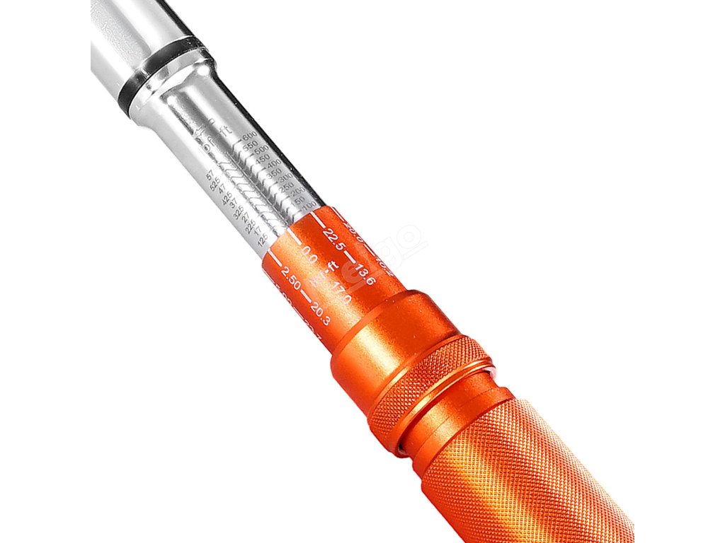 Tento momentový klíč je vyroben z vysoce kvalitní legované oceli a tepelně zpracován s chromovanou povrchovou úpravou a poskytuje výjimečnou pevnost, přesnost a odolnost, takže je ideální volbou pro profesionální upevňovací úkoly.