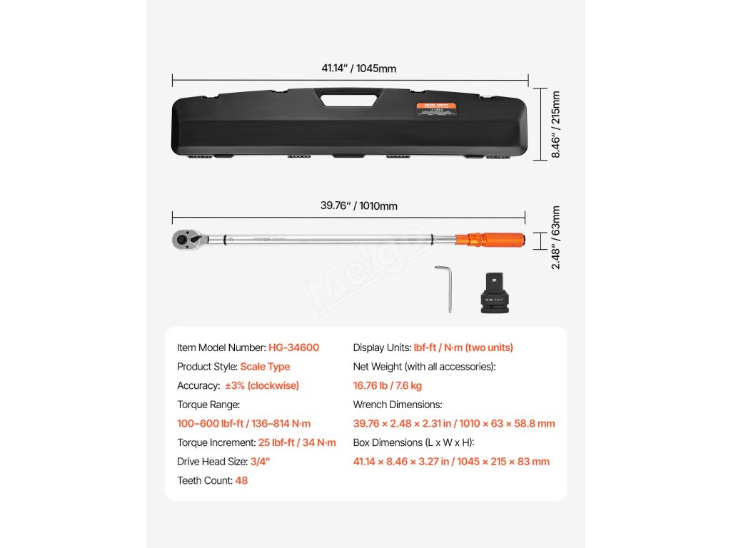 Momentový klíč 3/4 inch hnací, 100–600 lbf-ft / 136–814 n.m, ±3%