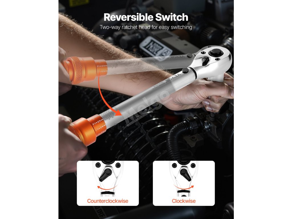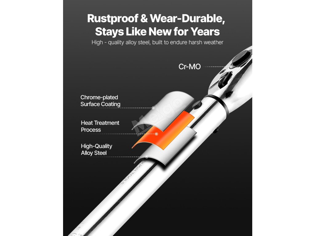 Tento momentový klíč je vyroben z vysoce kvalitní legované oceli a tepelně zpracován s chromovanou povrchovou úpravou a poskytuje výjimečnou pevnost, přesnost a odolnost, takže je ideální volbou pro profesionální upevňovací úkoly.