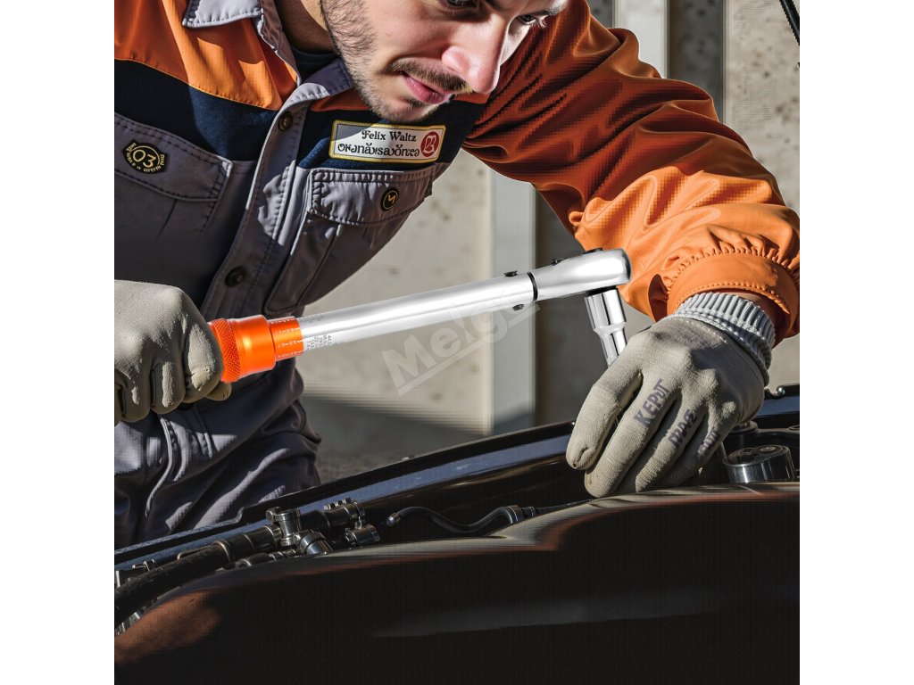 Přednastavená přesnost krouticího momentu ±3 % odpovídá potřebám přesné instrumentace a špičkové automobilové údržby. Ráčna se 72 zuby se při každém cvaknutí otočí o 5°, což usnadňuje práci ve stísněných prostorech nebo při potřebě jemného seřízení.