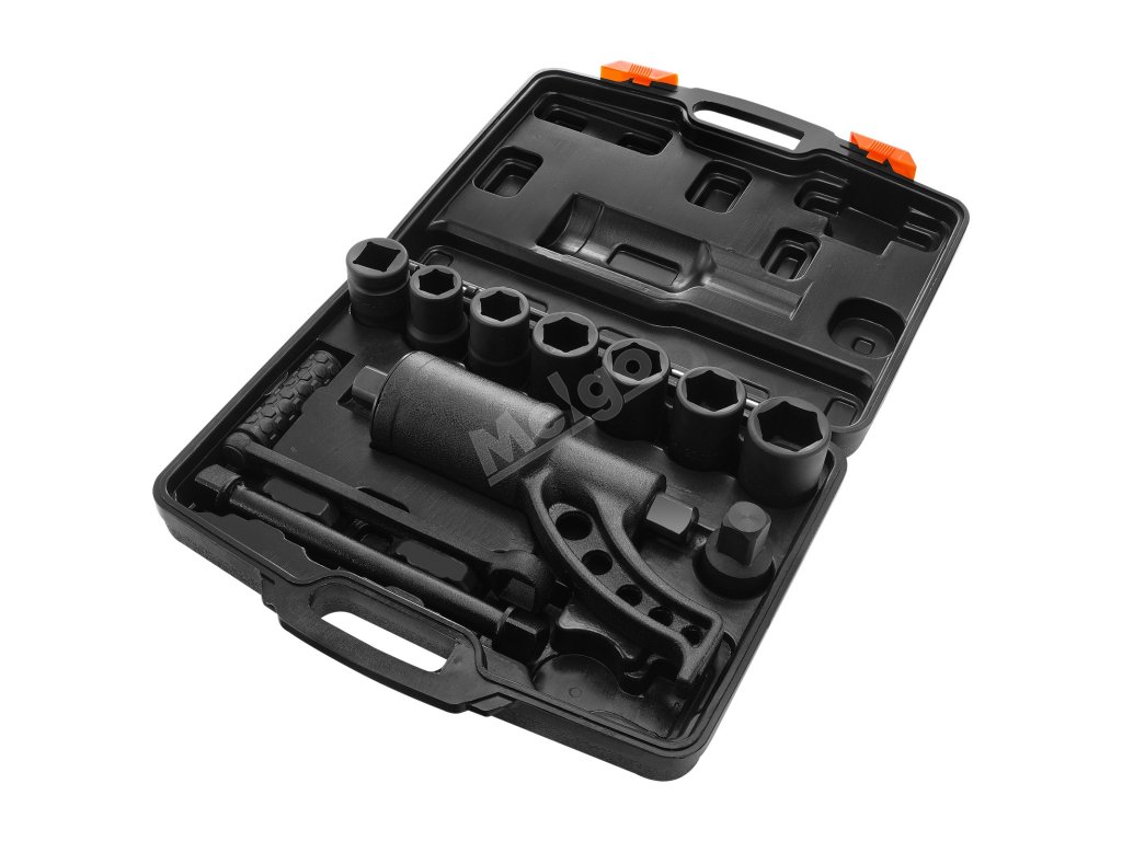 Náš klíč s násobičem matic je základním nástrojem pro demontáž a montáž matic, který se běžně používá u vozidel, jako je většina nákladních automobilů, obytných vozů, autobusů, traktorů, přívěsů a dalších těžkých vozidel.