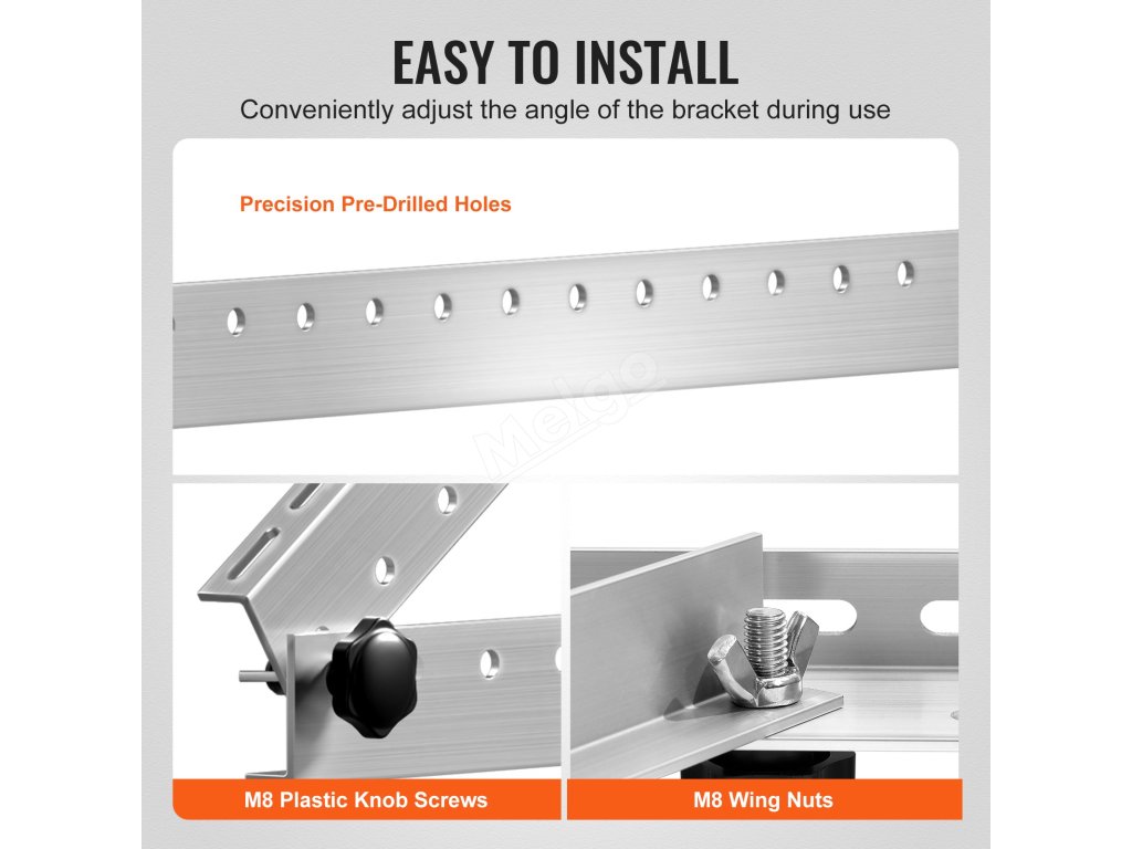 Pro spolehlivou podporu zvolte montážní držák solárních panelů VEVOR. Flexibilní nastavení v rozsahu 0-90° maximalizuje sluneční záření a energetickou účinnost. Nosnost 265 lb a konstrukce z eloxované hliníkové slitiny zajišťují dlouhodobou stabilitu, takže je ideální volbou pro instalaci solárních panelů.