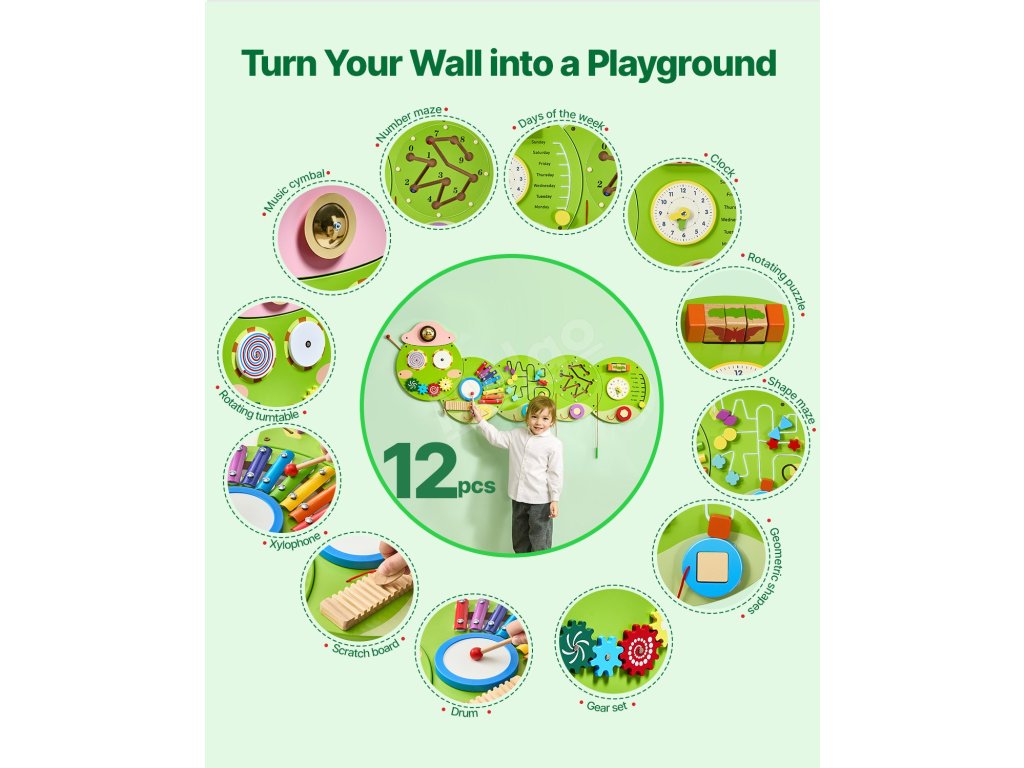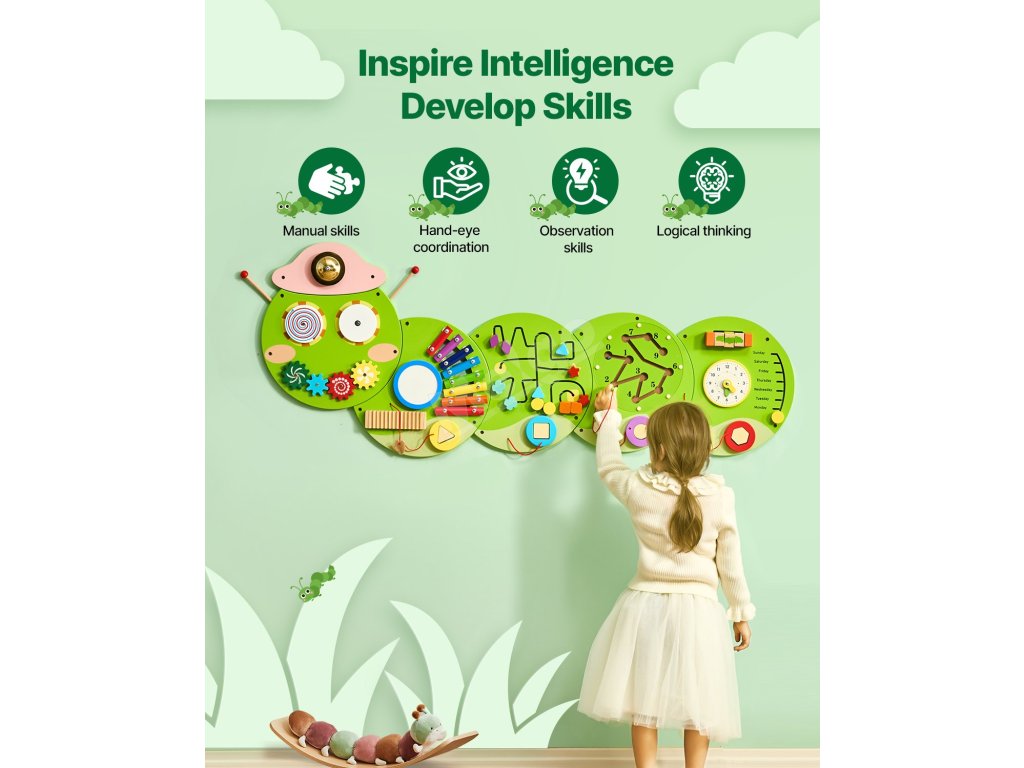 Podpořte zvědavost a učení svého dítěte pomocí tohoto nástěnného panelu s aktivitami inspirovanými metodou Montessori! Náš nástěnný panel s aktivitami podporuje zkoumání a zábavu prostřednictvím multismyslové hry, která je ideální pro rozvoj mladé mysli.