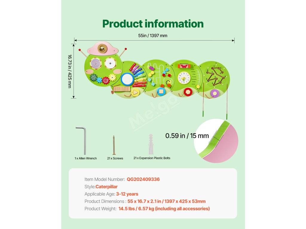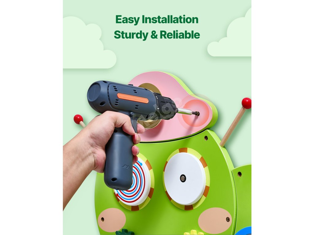Tento nástěnný panel s aktivitami je vyroben ze silných MDF desek, je odolnější než plast a je vyroben tak, aby vydržel roky hraní a rostl s vaším dítětem, aniž by se snadno rozbil nebo vybledl.