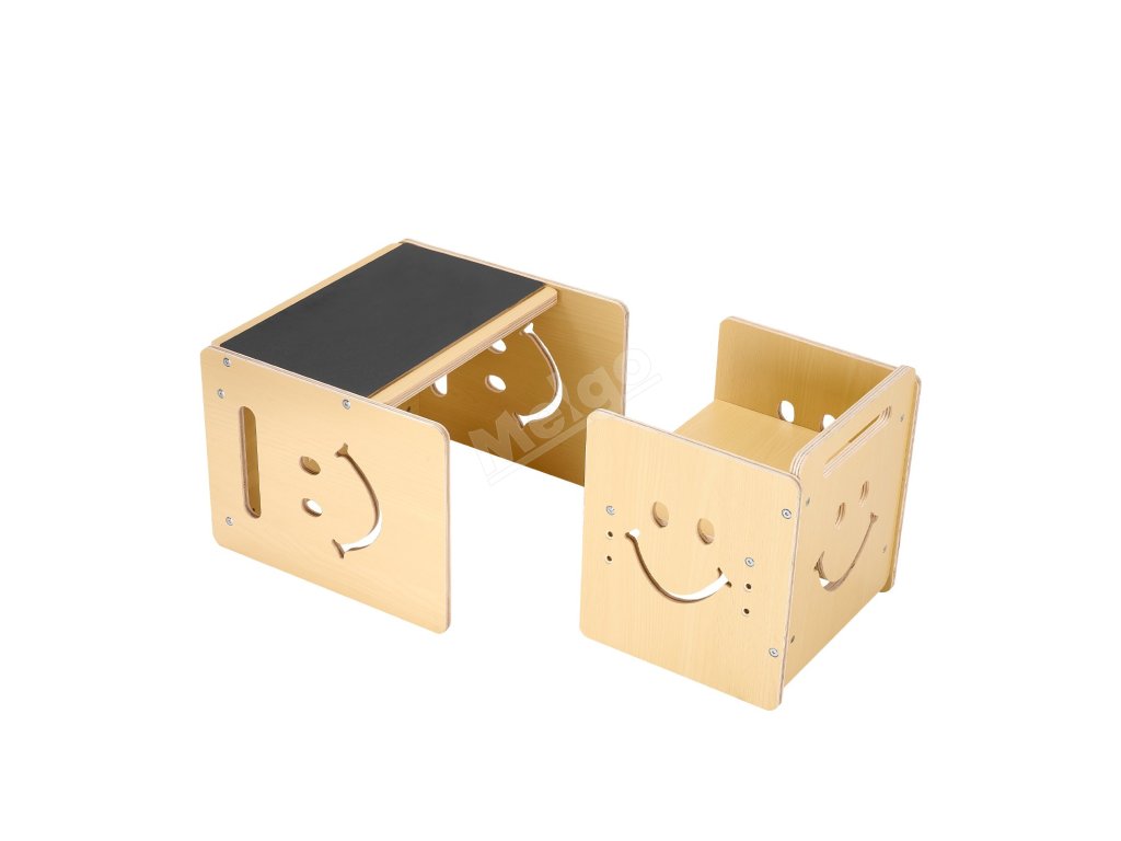 Montessori stůl a židle 3v1 s tabulí, nastavitelná výška 1–5 let