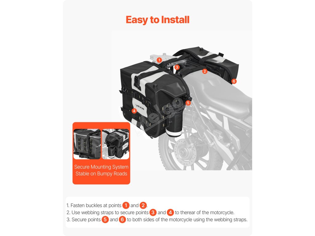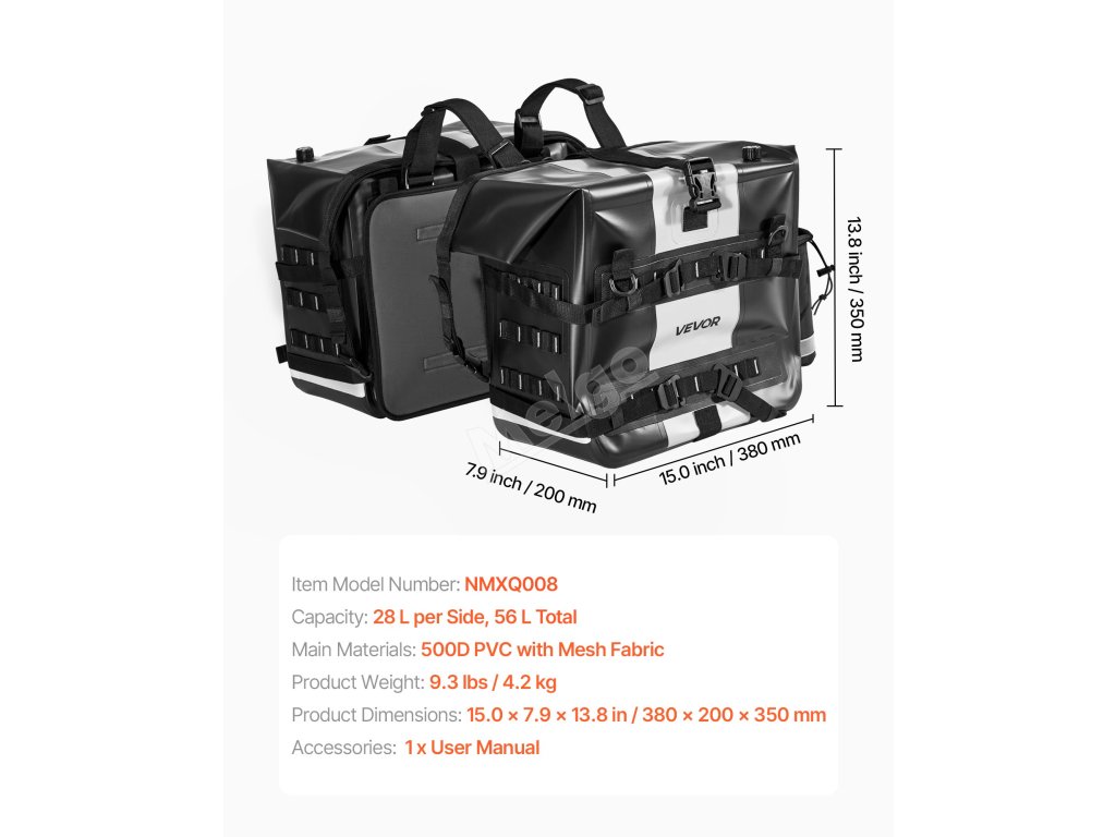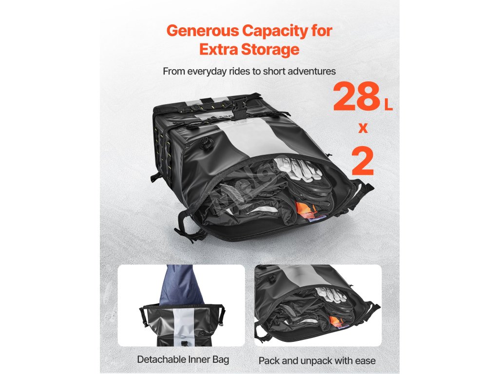 Motocyklová boční brašna 56 l (28 l × 2), nepromokavá, odnímatelná
