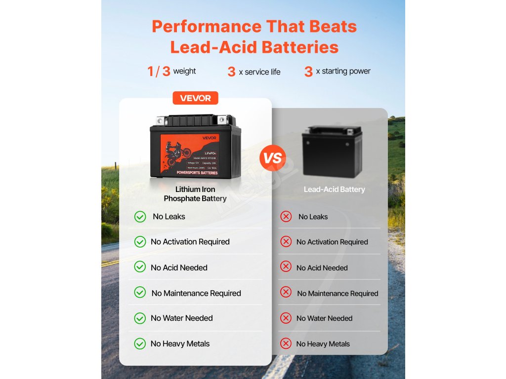 Díky kompaktním rozměrům a nízké hmotnosti se tato baterie do skútru snadno instaluje. Její univerzální těsnicí kroužek umožňuje nahradit mnoho olověných motocyklových baterií, takže modernizace je rychlá a snadná.
