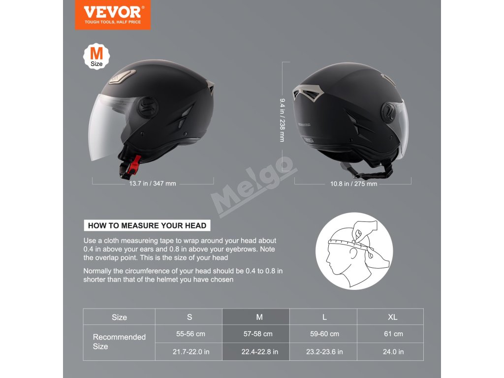| Velikost | přilba s 3/4 obličeje - velikost M |