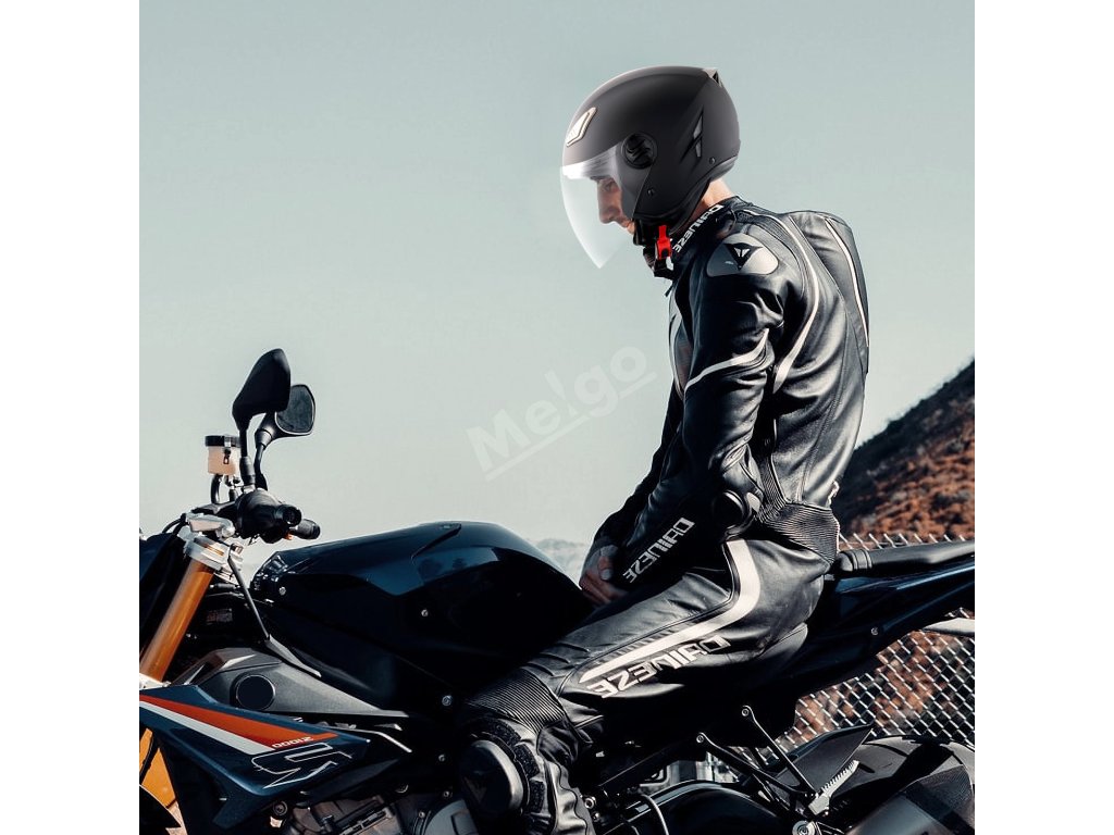 Aerodynamicky optimalizovaný tvar motocyklové přilby výrazně zabraňuje odporu větru a hluku a zajišťuje, aby jezdec mohl jasně vnímat své okolí, což zaručuje včasnou reakci a bezpečnou jízdu.