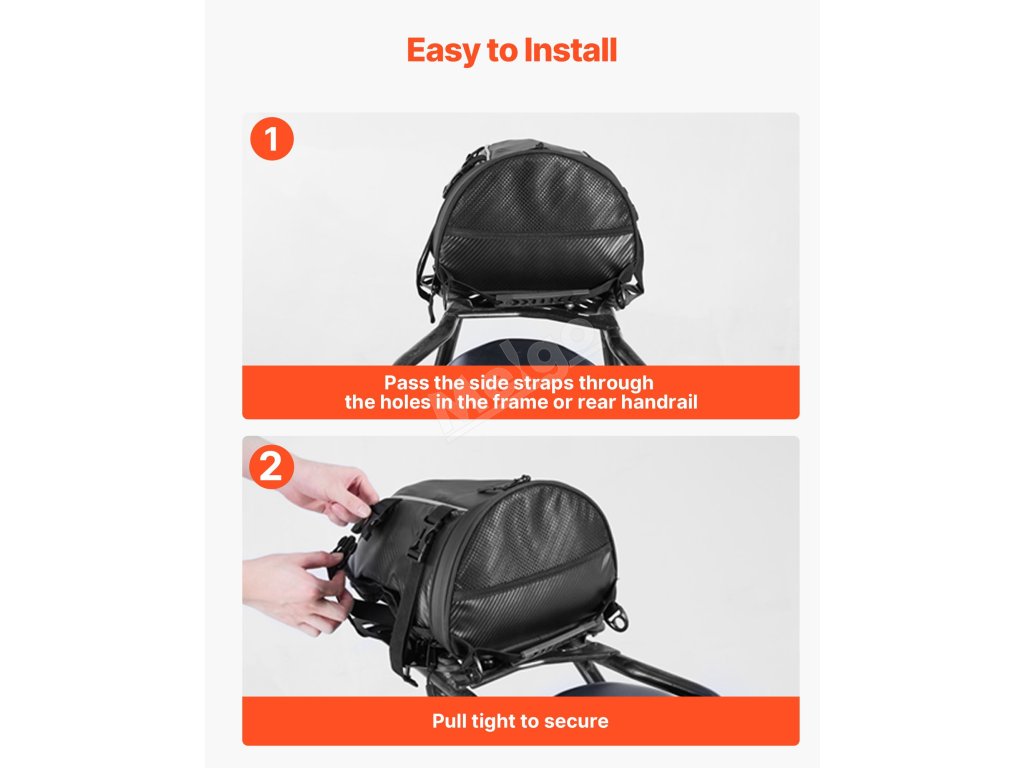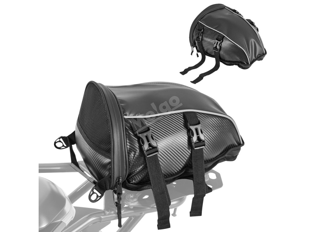 Hladký vodotěsný zip a odolná tkanina odolná proti stříkající vodě a opotřebení zvyšují celkový uživatelský komfort brašny na sedadlo motocyklu.