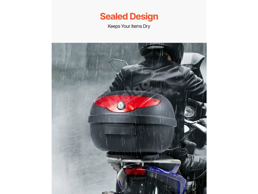 Díky uzavřené konstrukci zůstanou předměty uvnitř horního kufru na motocykl v suchu a bezpečí, takže můžete jezdit bez obav za každého počasí.