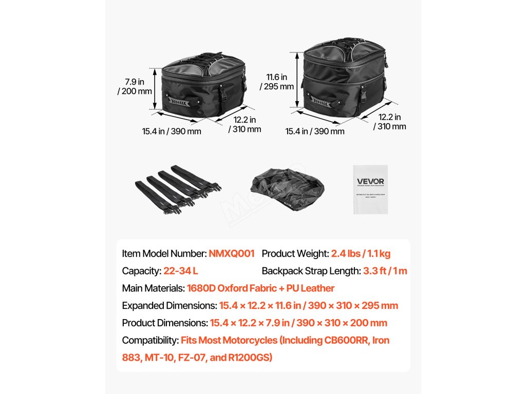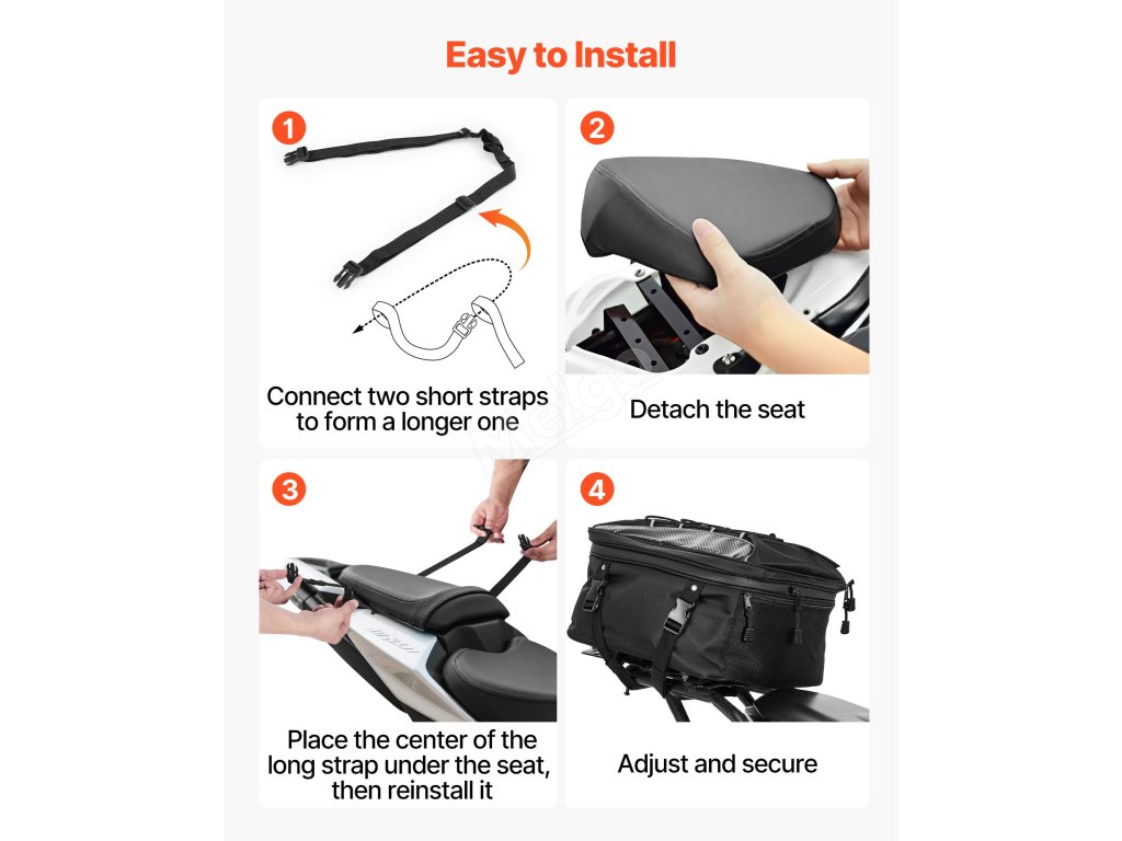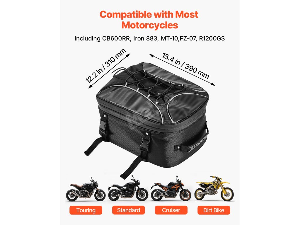 Tato zadní brašna na motocykl je vhodná pro většinu modelů motocyklů, je určena pro zadní část a poskytuje ideální dodatečný úložný prostor.