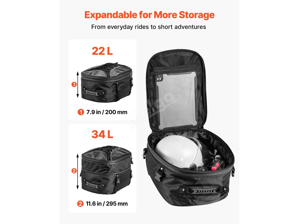 Motocyklový zadní vak 22–34 L rozšiřitelný, nepromokavý s popruhy