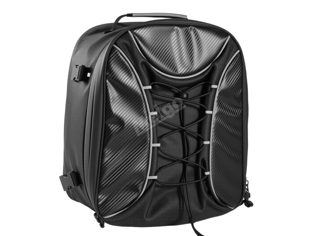 Prostorný design snadno pojme všechny vaše potřeby a udrží je přehledně uložené v brašně na zadním sedadle motocyklu.