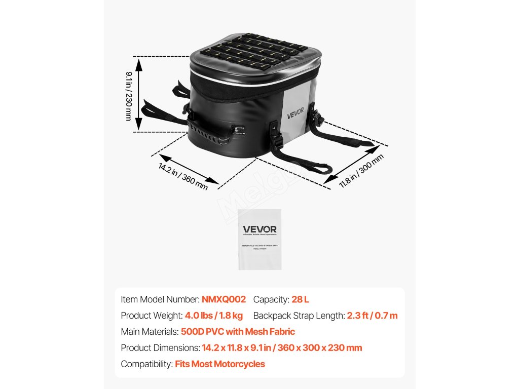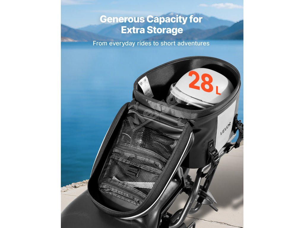 Motocyklový zadní vak 28 L, nepromokavý, s kapsou a přezkami