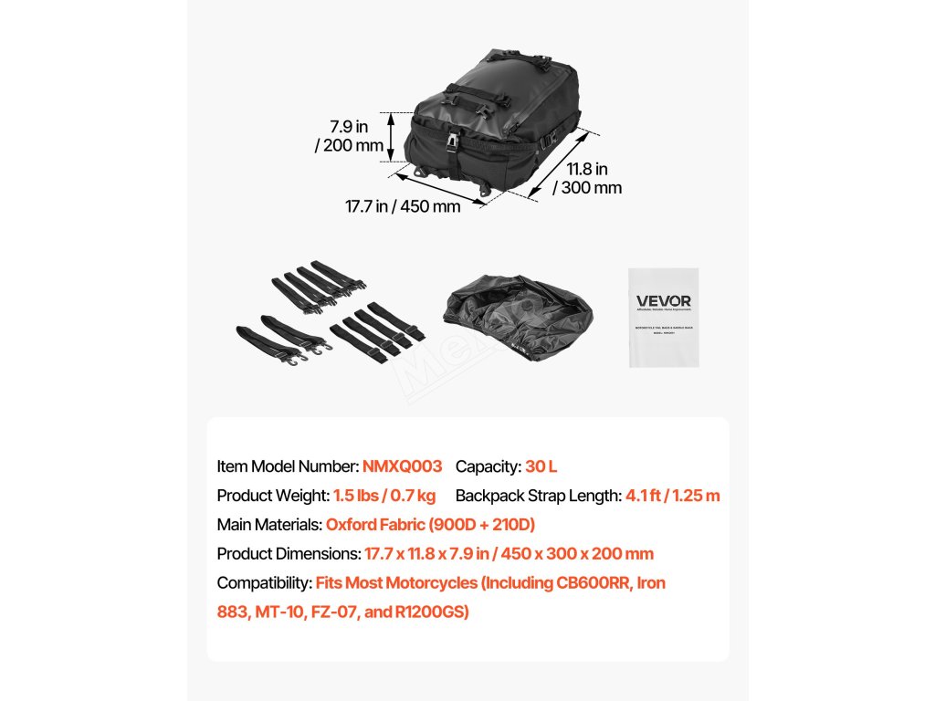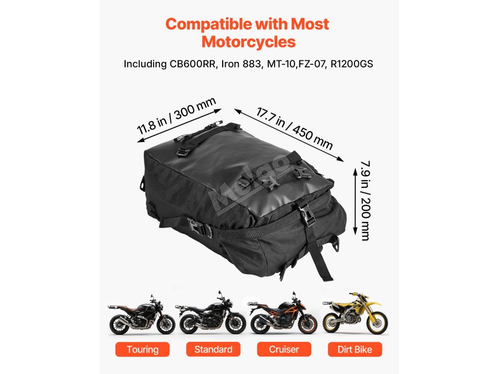 Tato zadní brašna na motocykl je vhodná pro většinu modelů motocyklů, je určena pro zadní část a poskytuje ideální dodatečný úložný prostor.