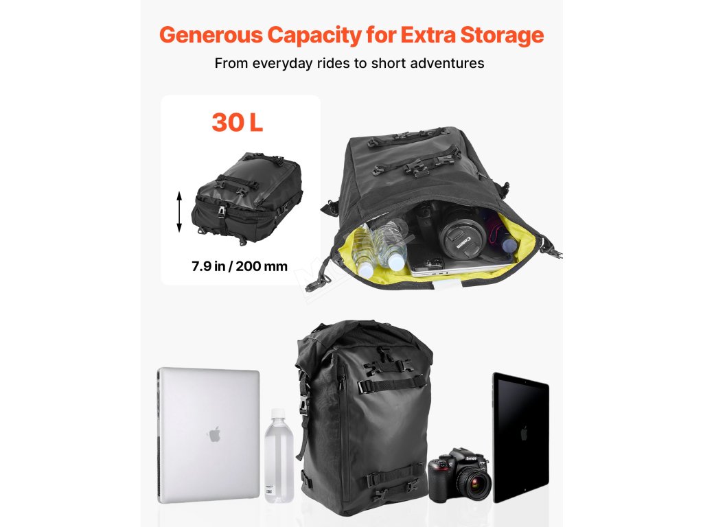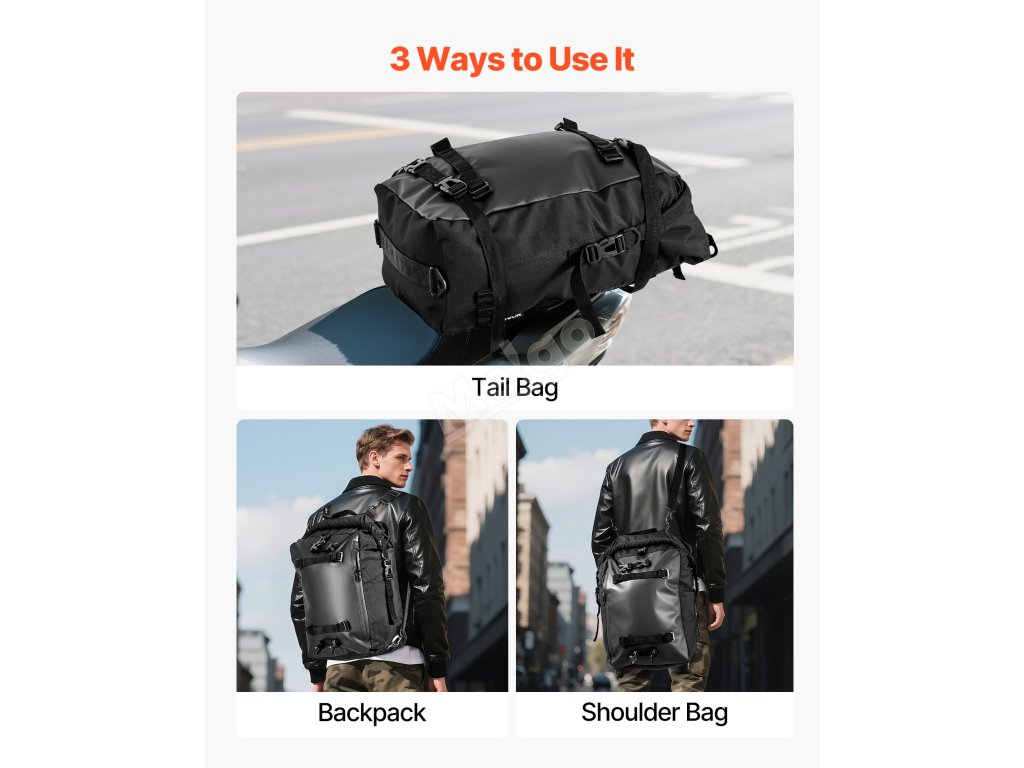 Motocyklový zadní vak 30 L, vodotěsný, s ramenními popruhy, na nosiče