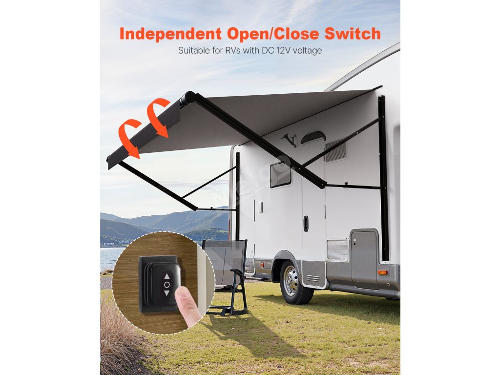 Nabízíme odolnou markýzu pro obytné vozy s vylepšenou 18oz čtyřvrstvou PVC vinylovou tkaninou, která je navržena tak, aby odolala proměnlivému počasí. Zesílený rám z hliníkové slitiny je vodotěsný, odolný proti korozi a zajišťuje dlouhodobou stabilitu a trvanlivost.