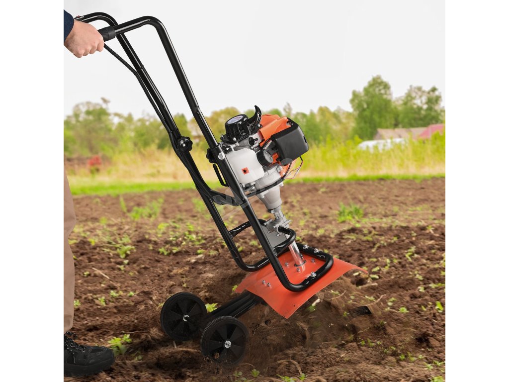 Ocelové hroty bez námahy obracejí půdu a nastavitelná sada kluzných hrotů se přizpůsobí různým terénům. Velká 5,8palcová kola zajišťují plynulý pohyb a usnadňují sázení a orbu.