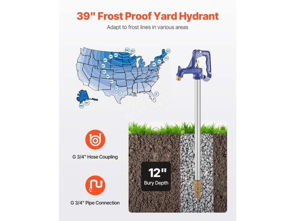 Náš 3,25FT mrazuvzdorný hydrant s hloubkou zákopu 12" zajišťuje plynulý průtok vody i v mrazivých podmínkách. Ať už zaléváte zahradu nebo zavlažujete plodiny, tento hydrant si s tímto úkolem poradí. Jeho dvouventilové provedení účinně zabraňuje zamrzání a hromadění vody, takže hydrant nezamrzne.