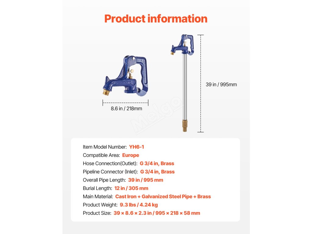 Tento odolný venkovní hydrant můžete použít pro všechny účely, od péče o zahradu a mytí aut až po zavlažování v zemědělství a napájecí stanice pro domácí zvířata. Je spolehlivý bez ohledu na počasí a pomůže vám bez problémů zvládnout práci.