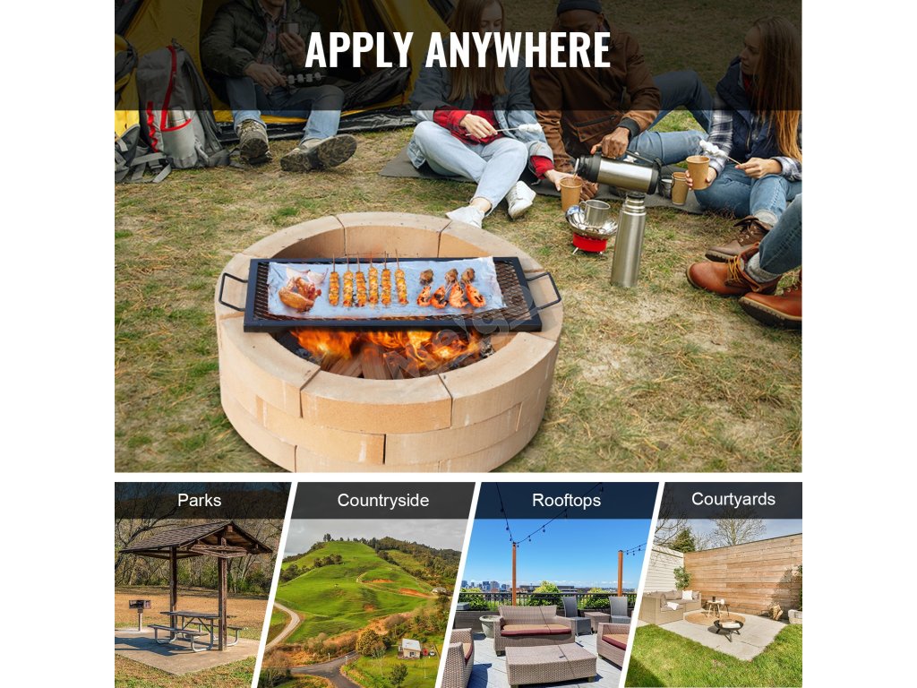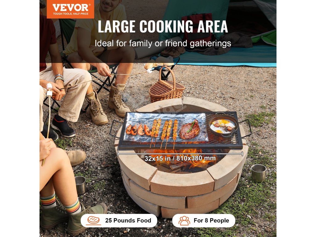 Bol vyrobený tak, aby sa hodil k rôznym ohniskám. Rozmery grilovacieho roštu VEVOR 32 × 15 palcov umožňujú, aby sa hodil k rôznym ohniskám. Vďaka tomu je univerzálny. Môže zakrývať polovicu väčšieho ohniska, čím umožňuje prístup k ohňu. Počas varenia môžete tiež prikladať oheň. Výborne sa hodí aj do menších ohnísk. Okrem toho rošt svojou veľkosťou poskytuje efektívnu plochu na grilovanie. Či už máte vlastný malý oheň na záhrade alebo veľký táborový oheň, tento rošt bude dobre fungovať.