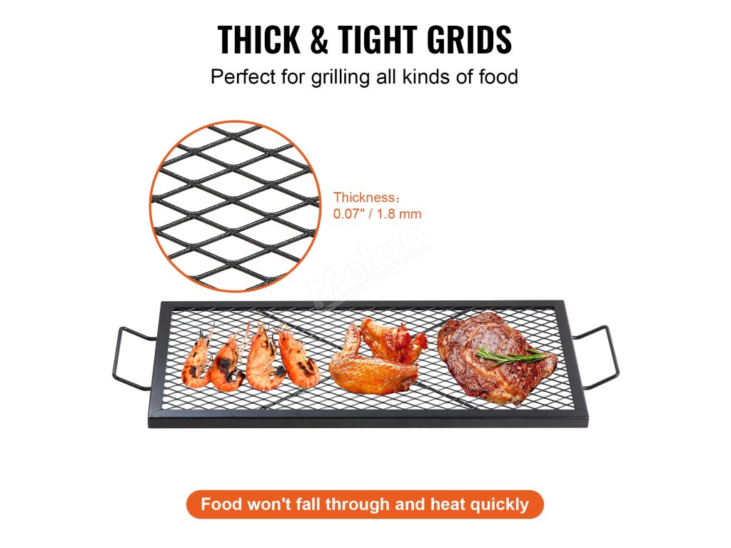 Toto je dokonalý príklad varenia v prírode. Má skvelú plochu na varenie nad otvoreným ohňom. Obdĺžnikový rošt je ideálny na grilovanie mäsa a zeleniny. Úzko pletený výplet svojou konštrukciou zabezpečuje rovnomerné rozloženie tepla. K ohňu máte jednoduchý prístup zospodu. Vďaka tomu je vhodný na kempovanie alebo grilovanie na dvore. Vďaka veľkosti tohto roštu získate dostatok priestoru na varenie. Ľahko sa s ním manipuluje a premiestňuje. Naša prvotriedna oceľ Q235 poskytuje odolnosť. Váš rošt tak vydrží vysoké teploty až do 572 °C. Preto je spoľahlivou voľbou na akékoľvek podujatie spojené s pečením pod holým nebom.