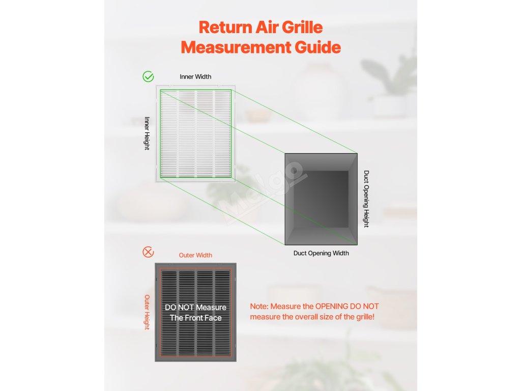 Mřížka zpětného vzduchu 20×25" pro 1" filtry, ocelová na zeď
