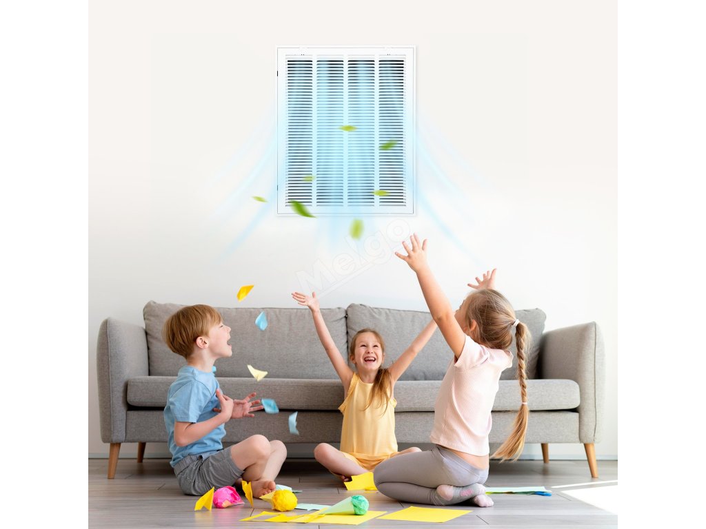 Šikmá mřížka maximalizuje proudění vzduchu pro efektivní výměnu vzduchu mezi vnitřním a venkovním prostorem a zároveň podporuje instalaci filtrů pro zlepšení kvality vzduchu.