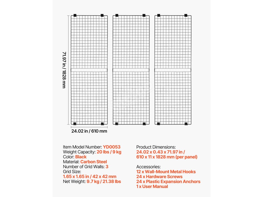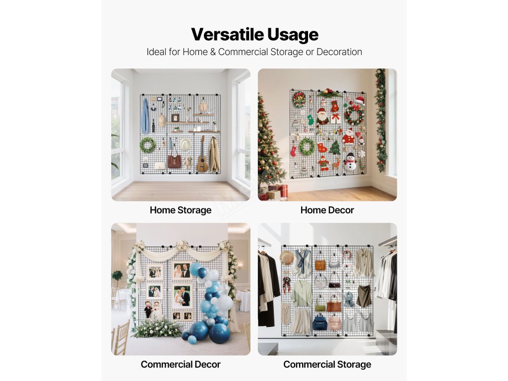 Proměňte nepořádek v elegantní organizaci pomocí našeho třípanelového mřížkového nástěnného systému. Připevněte jej bez námahy a vystavte své řemeslné výrobky nebo předměty. Tato mřížková stěna je ideální pro domácí i komerční prostory a nechá vyniknout vaši kreativitu a osobnost.