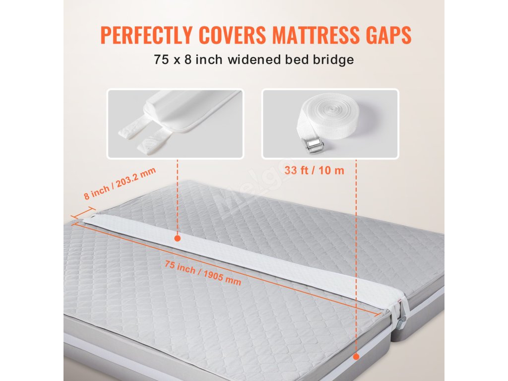 Můstek mezi matracemi pro split king, 25d pěna, 75×8" s přezkou