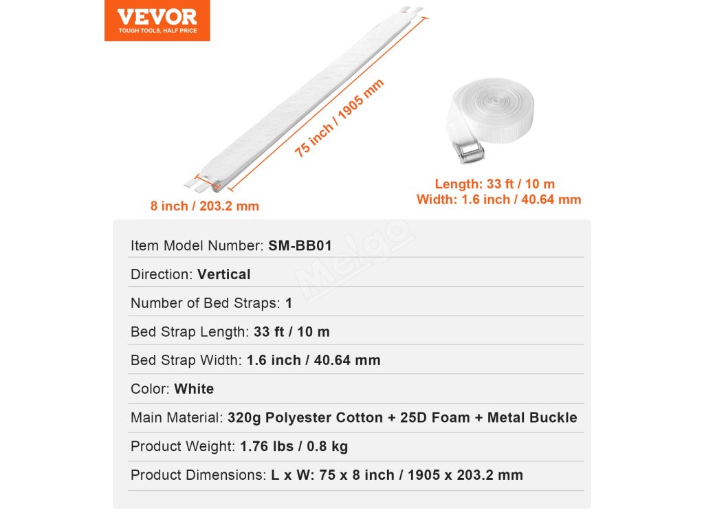 | Šířka popruhu postele | 1.6 palců / 40,64 mm |