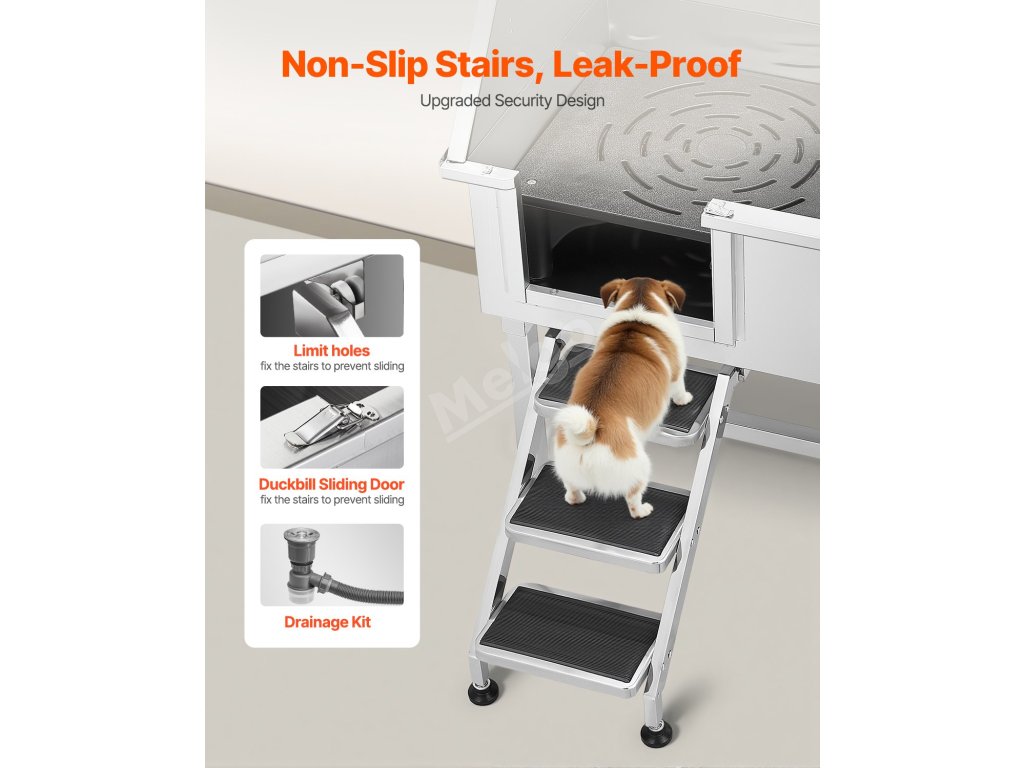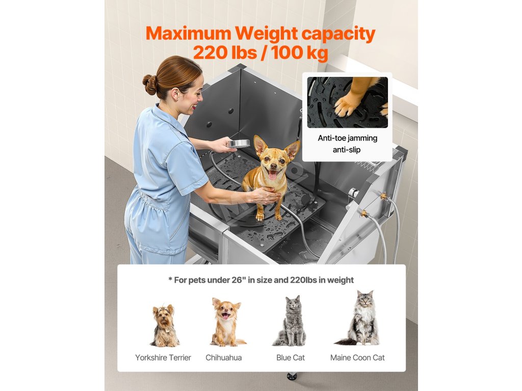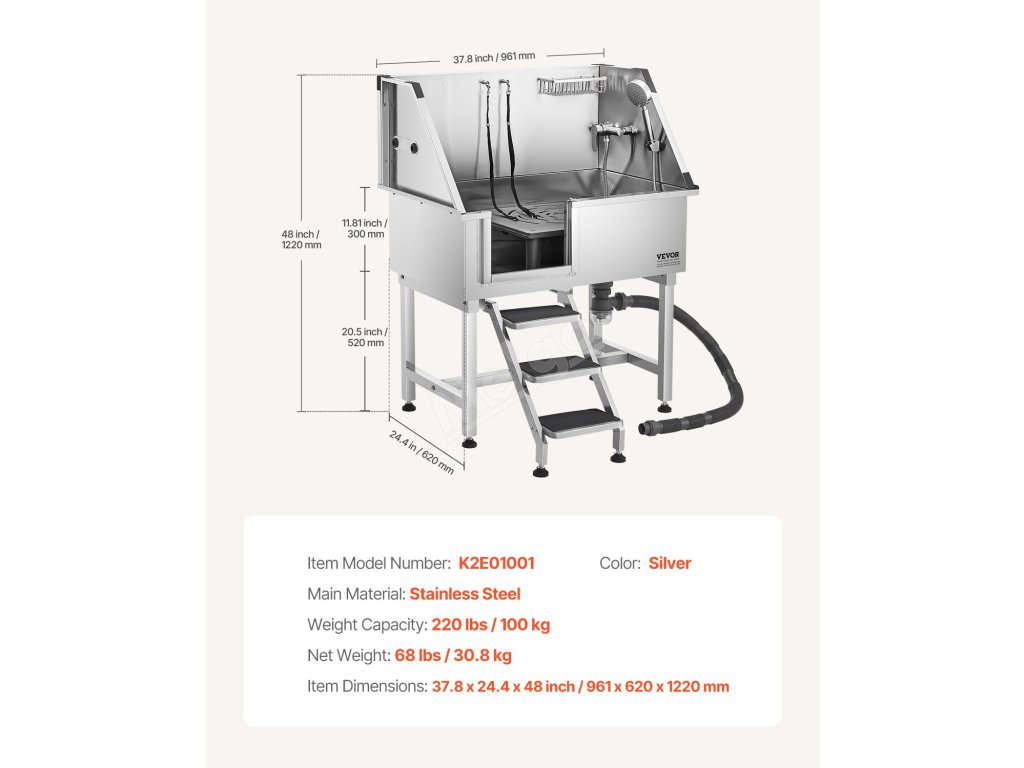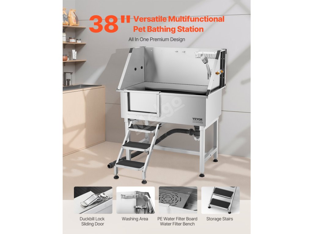 Tato vana zajišťuje, že voda neuniká. Je vyrobena z nerezové oceli, je odolná proti korozi a robustní, takže si časem zachová svůj nový vzhled. Vana má hladké okraje, které zajišťují bezpečnost domácích zvířat a uživatelů při koupání.