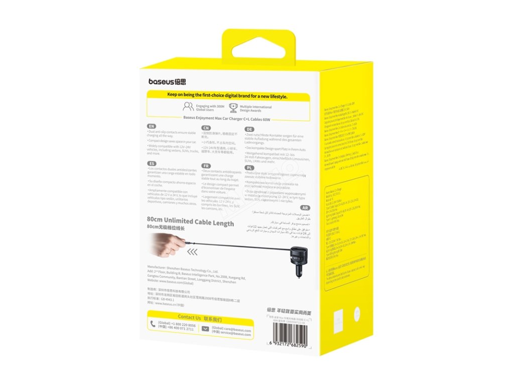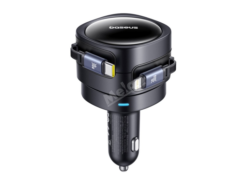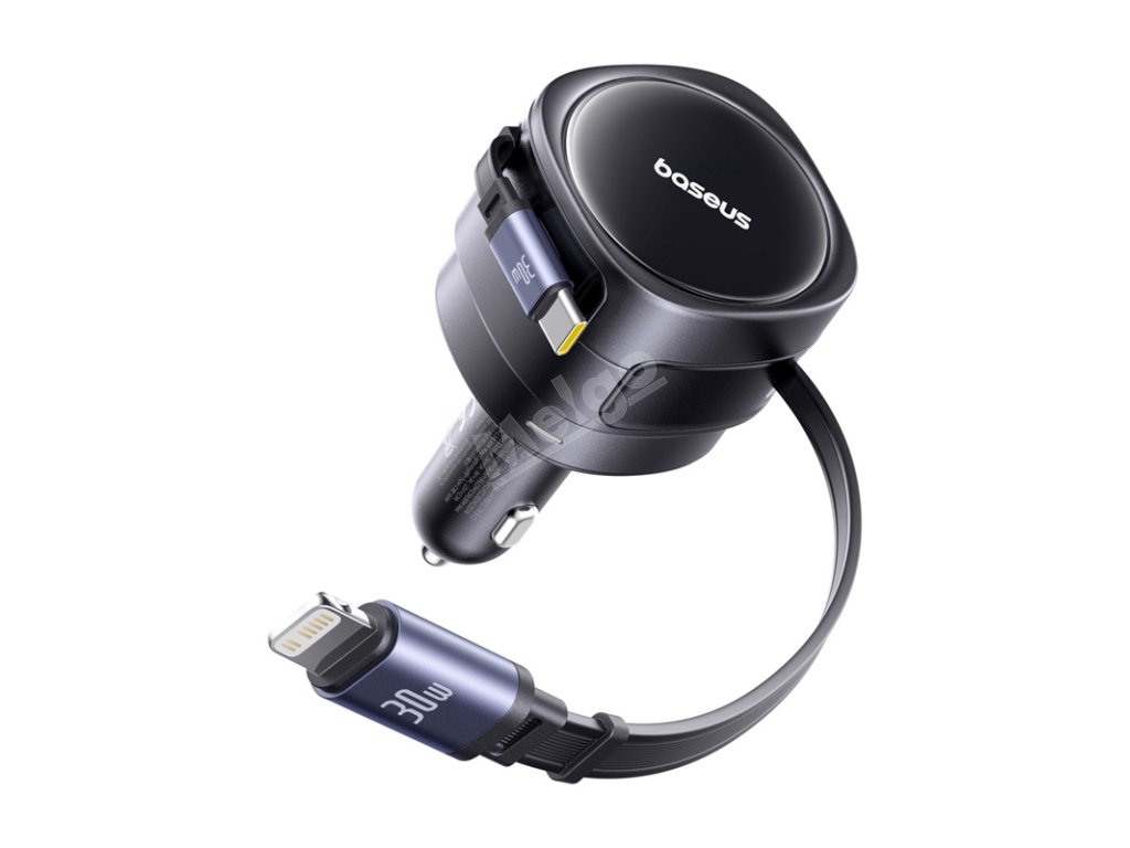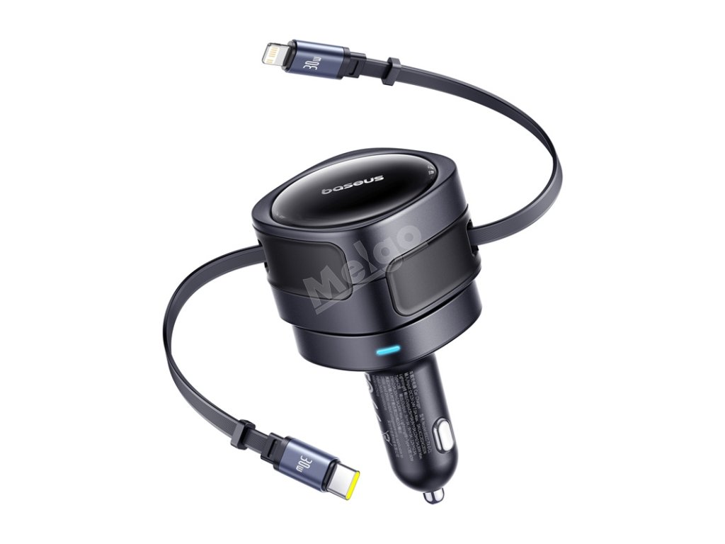 Nabíječka do auta Baseus se dvěma vestavěnými kabely (USB-C a Lightning) s celkovým výkonem 60 W umožňuje rychlé nabíjení dvou zařízení současně a je ideální pro řidiče i spolujezdce. Integrovaný bezpečnostní systém, otočná konstrukce a kompatibilita s napětím 12-24 V zajišťují spolehlivost v každém vozidle.