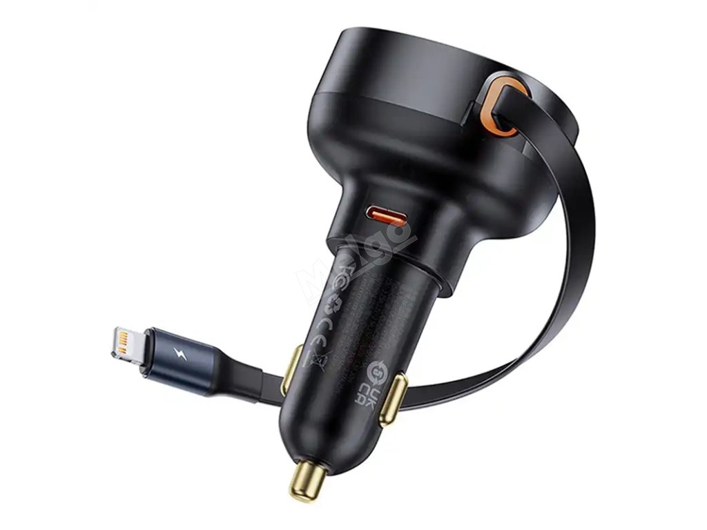Baseus Enjoyment Pro je promyšleně navržená nabíječka do auta - má 70 cm dlouhý navíjecí kabel s konektory Lightning a USB-C a port USB-A zabudovaný do dříku, který umožňuje nabíjet až tři různá zařízení současně, což uživateli šetří čas i peníze, zejména proto, že podporují rychlé nabíjení. Pozlacené koncovky také zajišťují nižší odpor. Navíc díky zatahovacímu provedení bude ve vašem autě mnohem snazší udržovat pořádek a ušetříte si frustraci spojenou s rozmotáváním kabelů. Světlo zabudované v nabíječce dodává nejen eleganci, ale také usnadňuje její nalezení v noci. Nabíječka je univerzální a bude fungovat v osobních automobilech, vozech SUV nebo nákladních automobilech.
