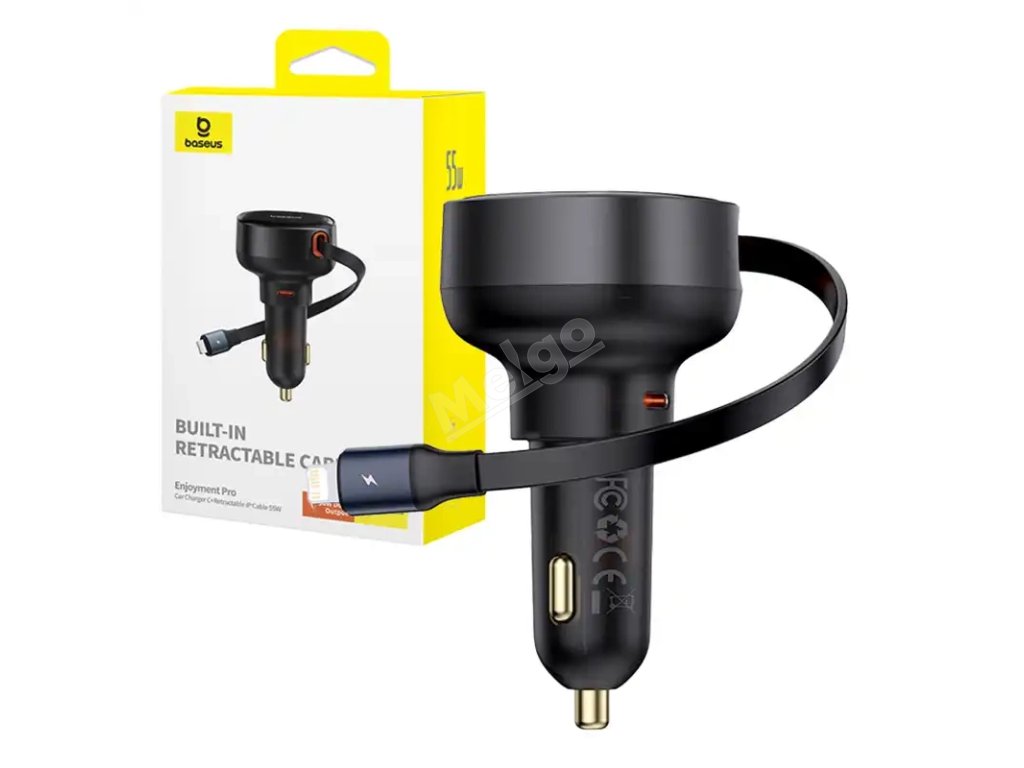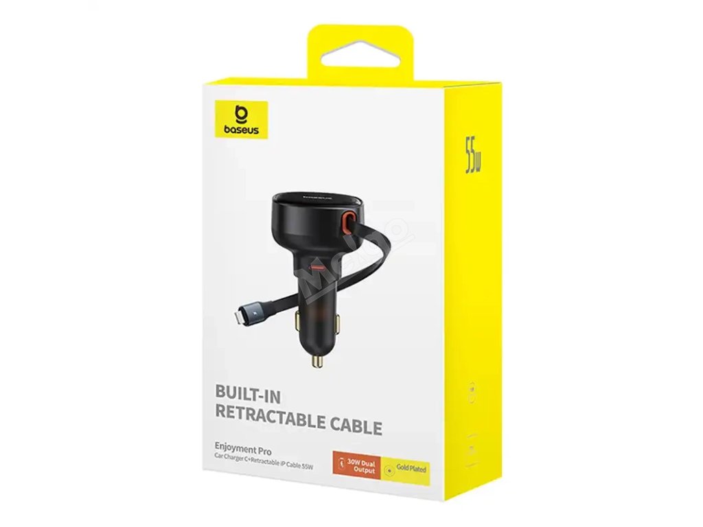 Nabíječka do auta Baseus Enjoyment Pro s kabelem lightning + USB-C, 55 W (černá)