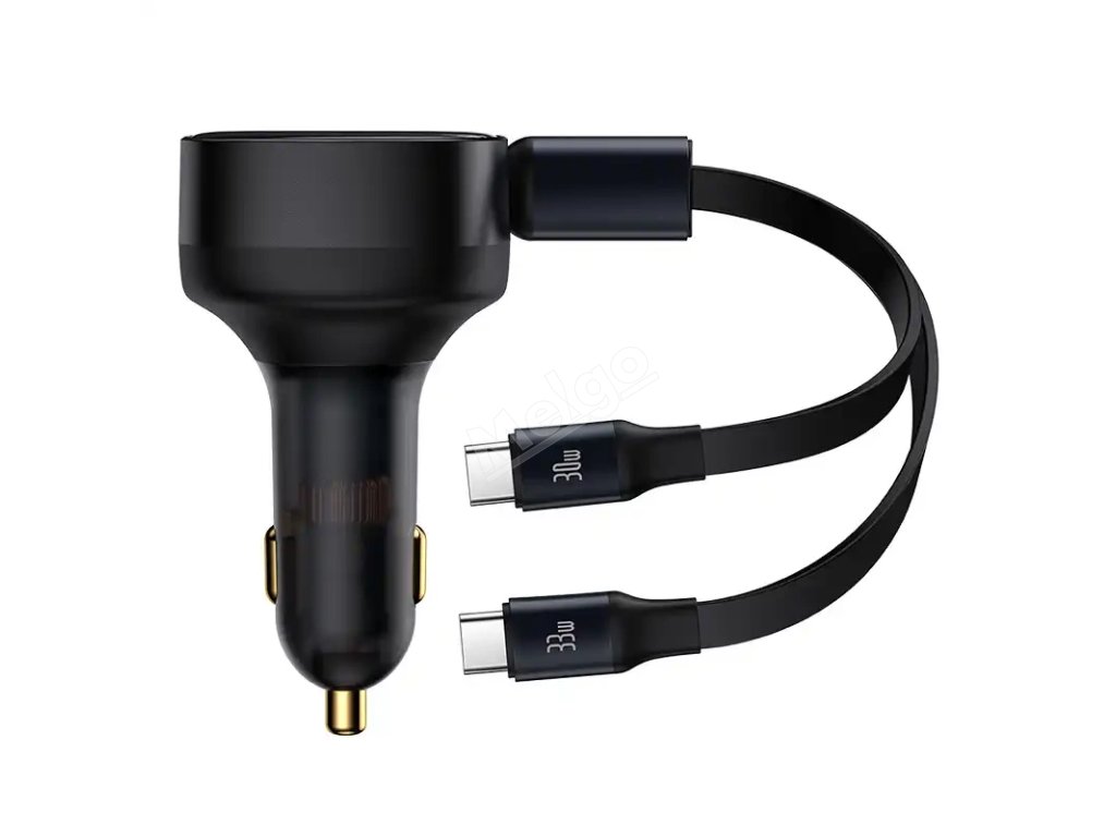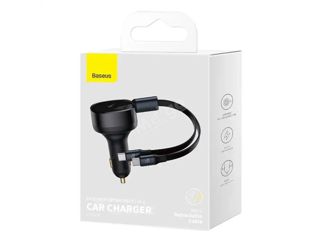 Nabíječka do auta Baseus Enjoyment s kabely USB-C, 33 W (černá).