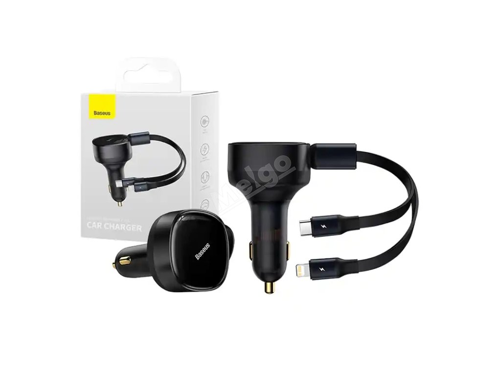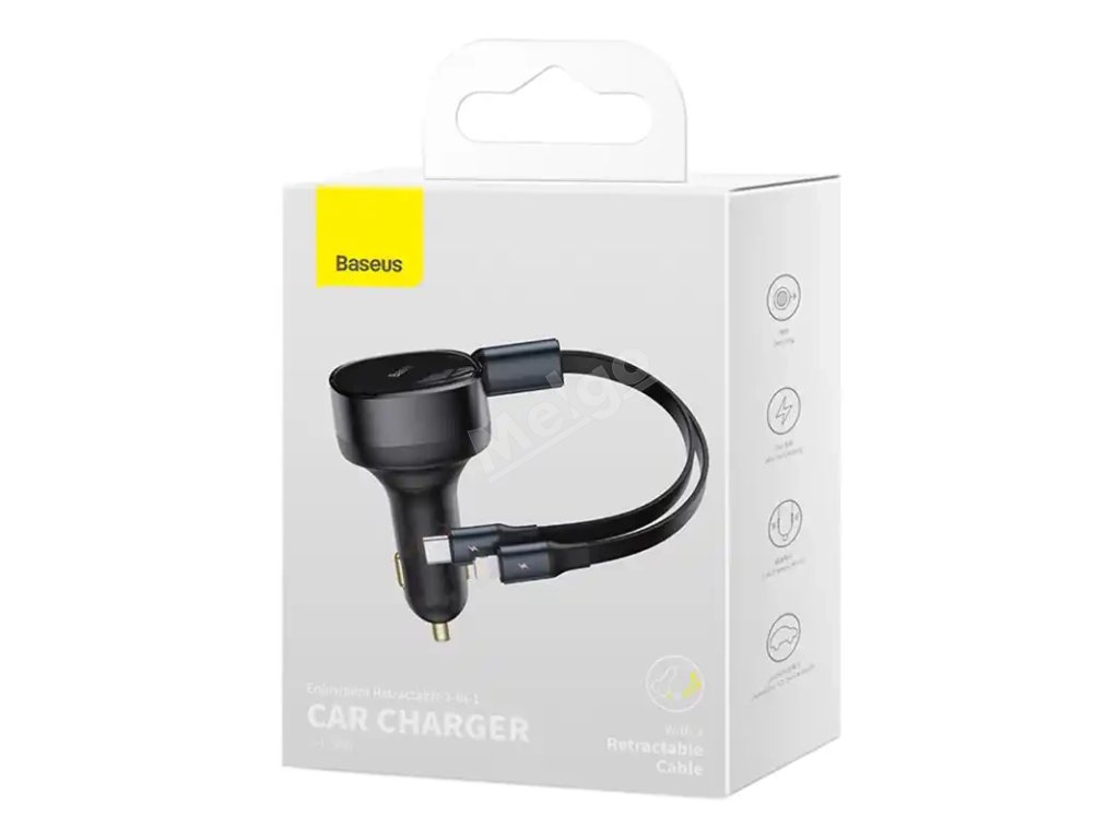 Autonabíječka Baseus Enjoyment s kabely USB-C + Lightning 3A, 30 W (černá)