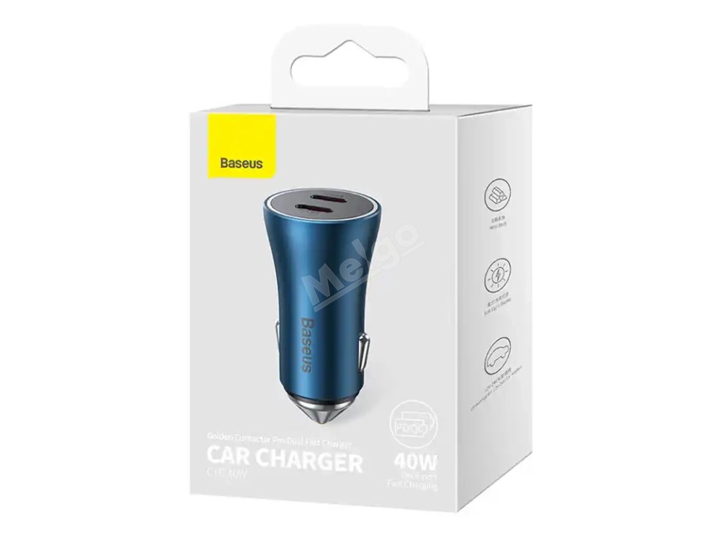 Nabíječka do auta Baseus Golden Contactor Pro, 2x USB-C, 40 W (modrá)